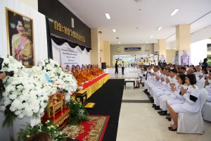 ทั้งนี้ ภายในพิธีมีการนิมนต์พระสงฆ์จากวัดพระราม 9 กาญจนาภิเษก สวดพระพุทธมนต์และประกอบพิธีบำเพ็ญกุศล พร้อมทั้งจัดโต๊ะหมู่บูชา ประดิษฐานพระฉายาลักษณ์ สมเด็จพระนางเจ้าสิริกิติ์ พระบรมราชินีนาถ พระบรมราชชนนีพันปีหลวง เพื่อแสดงความจงรักภักดีและความอาลัยอย่างสมพระเกียรติ