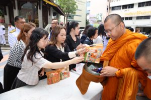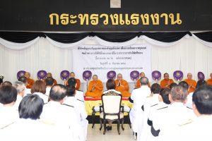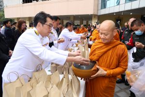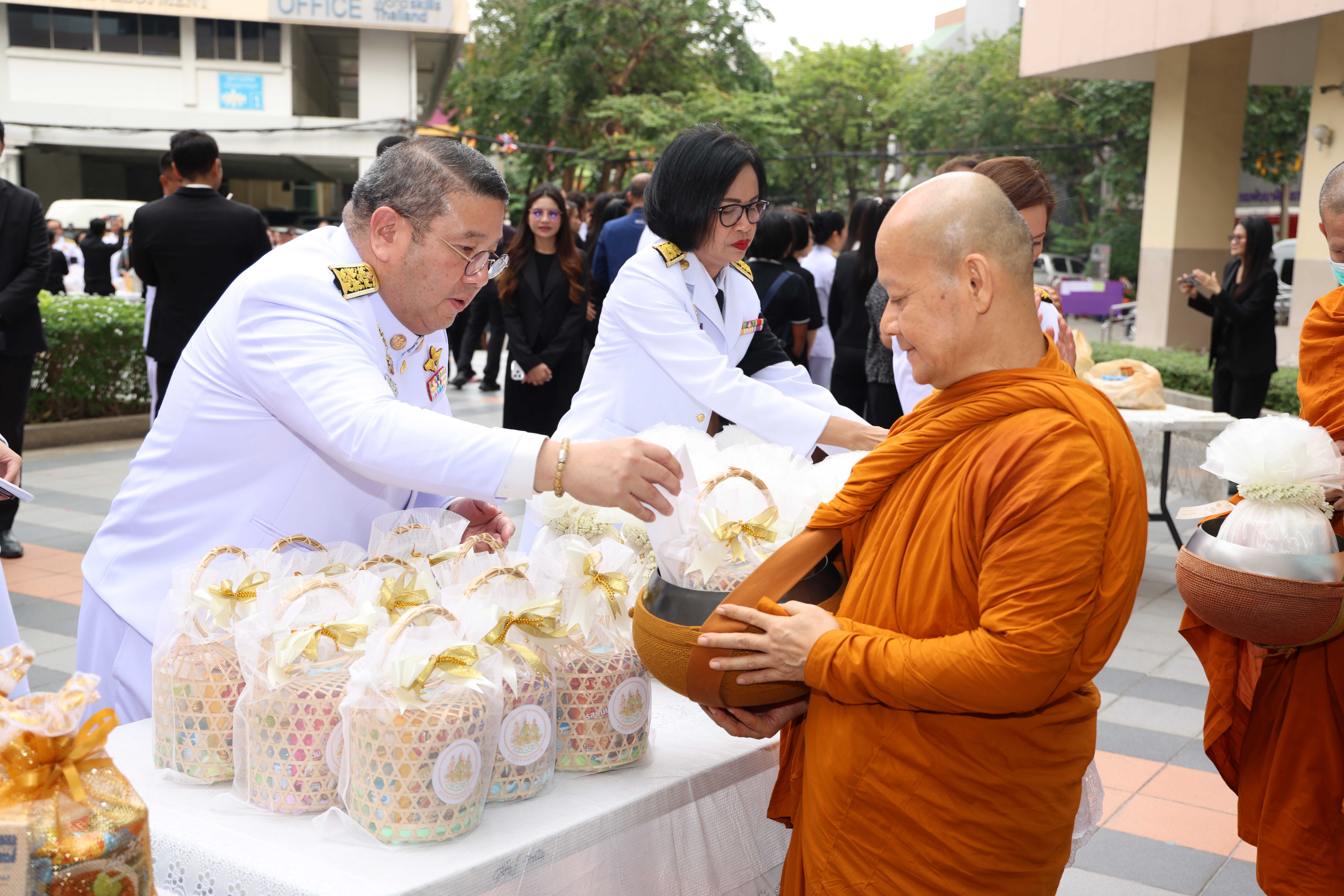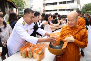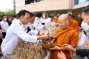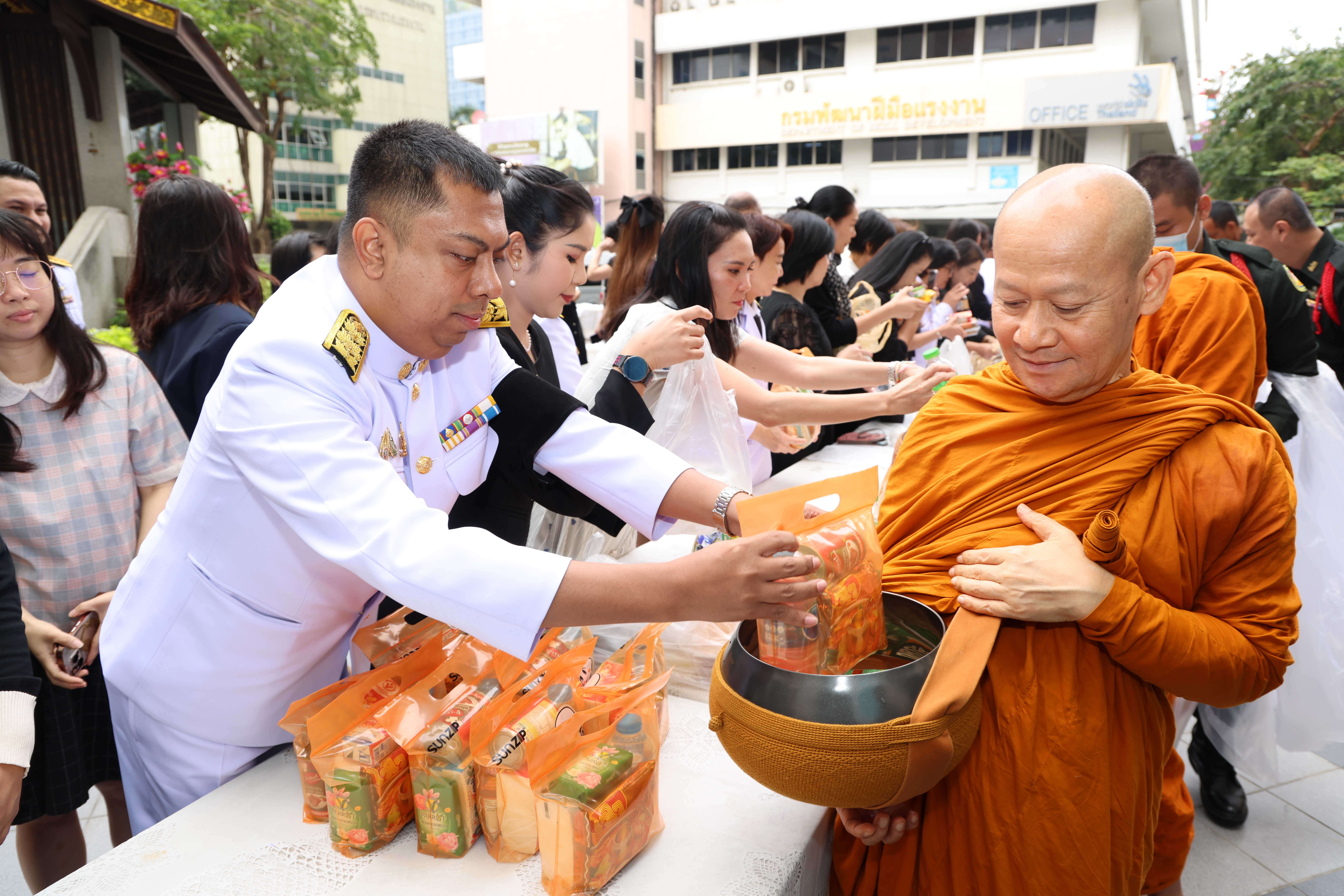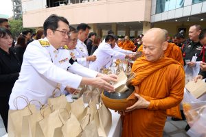 ภายหลังเสร็จสิ้นพิธีบำเพ็ญกุศล นางสาวตรีนุช เทียนทอง รัฐมนตรีว่าการกระทรวงแรงงาน พร้อมด้วยผู้บริหารระดับสูง ข้าราชการ และเจ้าหน้าที่กระทรวงแรงงาน ร่วมตักบาตรข้าวสารอาหารแห้งถวายพระสงฆ์ จำนวน 10 รูป เพื่อถวายเป็นพระราชกุศลโดยพร้อมเพรียงกัน ซึ่งบรรยากาศเป็นไปด้วยความสงบ สำนึกในพระมหากรุณาธิคุณ และความจงรักภักดีอย่างล้นพ้น