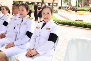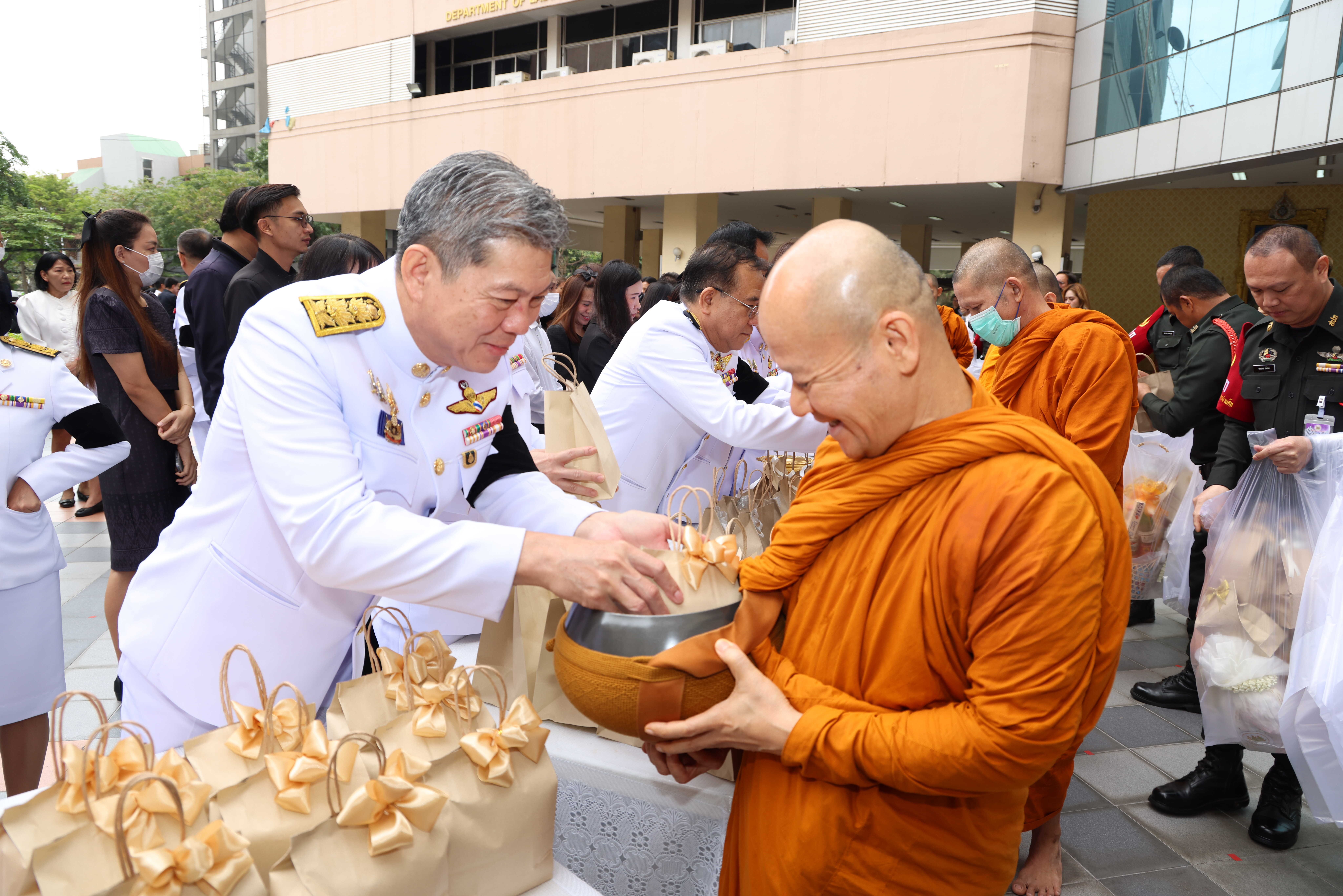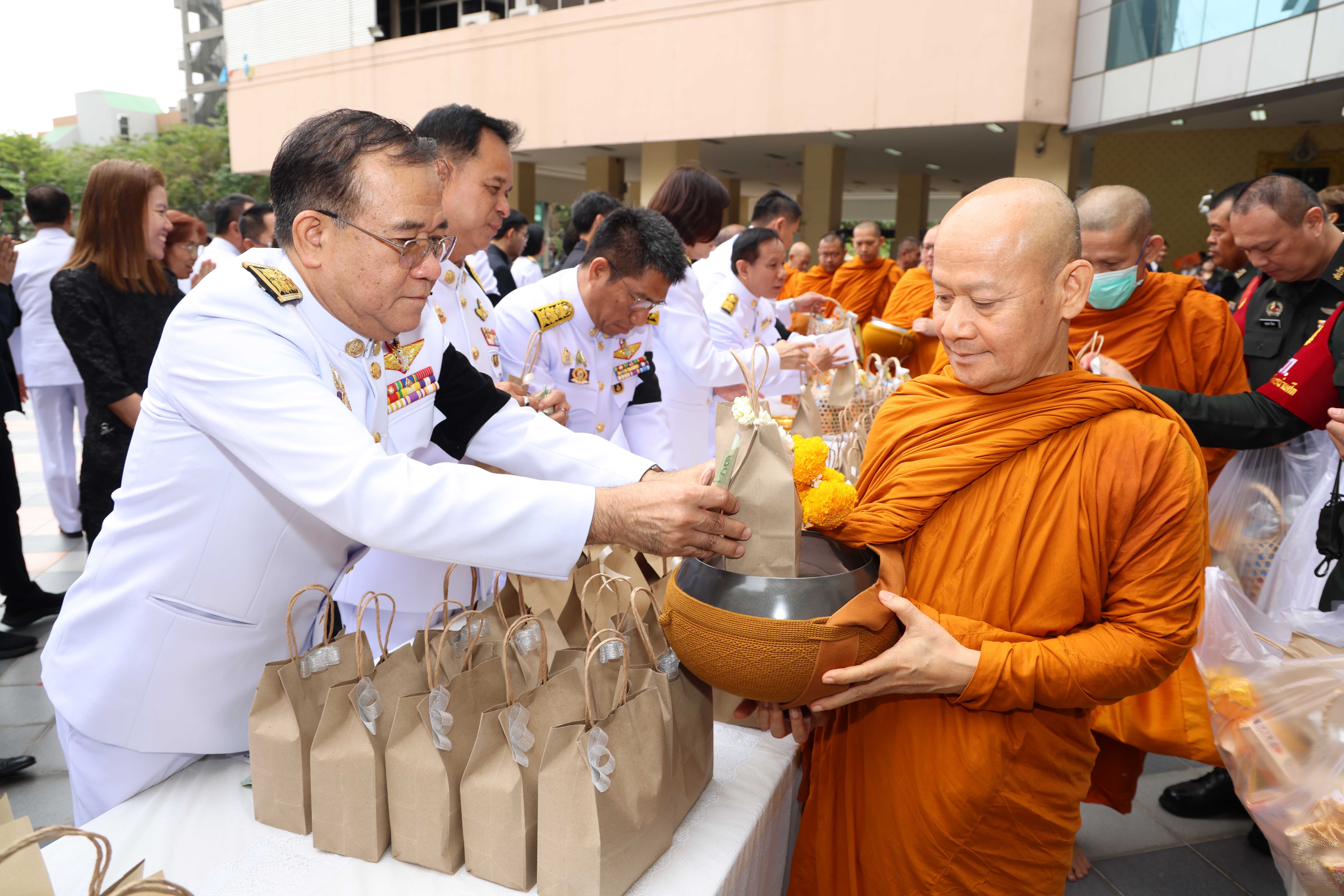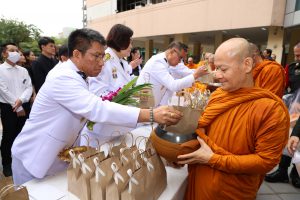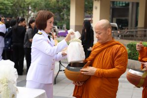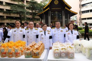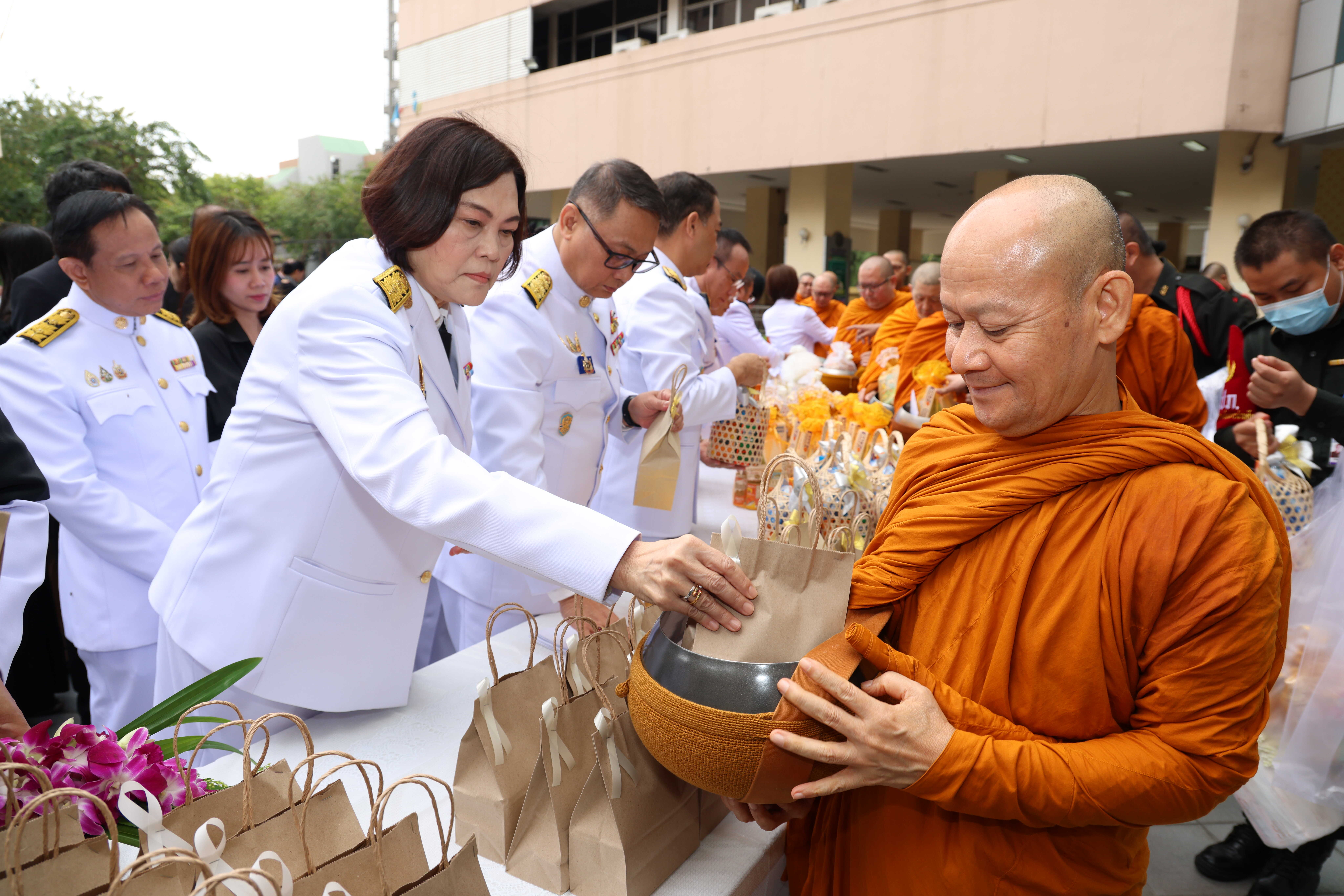 ภายหลังเสร็จสิ้นพิธีบำเพ็ญกุศล นางสาวตรีนุช เทียนทอง รัฐมนตรีว่าการกระทรวงแรงงาน พร้อมด้วยผู้บริหารระดับสูง ข้าราชการ และเจ้าหน้าที่กระทรวงแรงงาน ร่วมตักบาตรข้าวสารอาหารแห้งถวายพระสงฆ์ จำนวน 10 รูป เพื่อถวายเป็นพระราชกุศลโดยพร้อมเพรียงกัน ซึ่งบรรยากาศเป็นไปด้วยความสงบ สำนึกในพระมหากรุณาธิคุณ และความจงรักภักดีอย่างล้นพ้น
