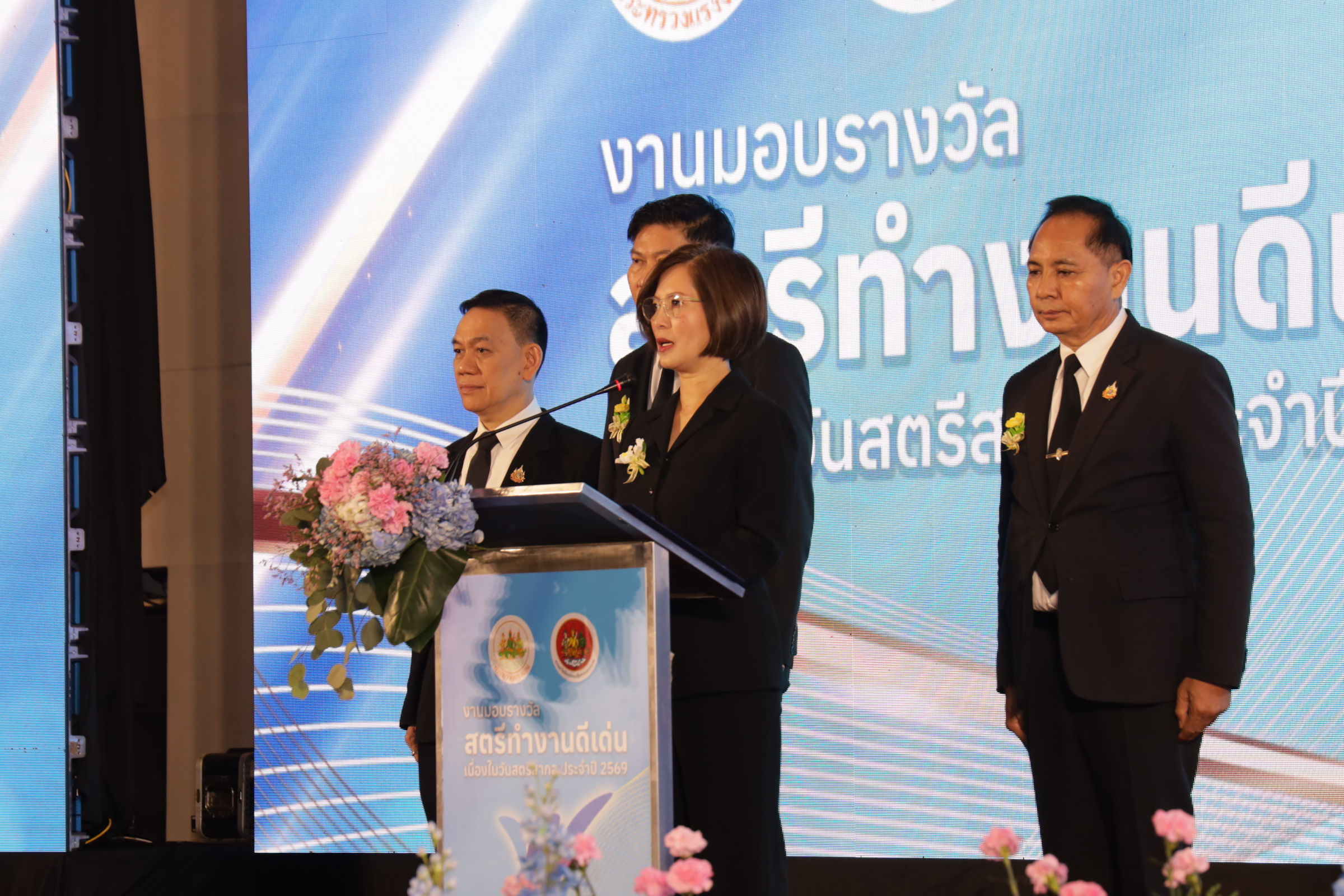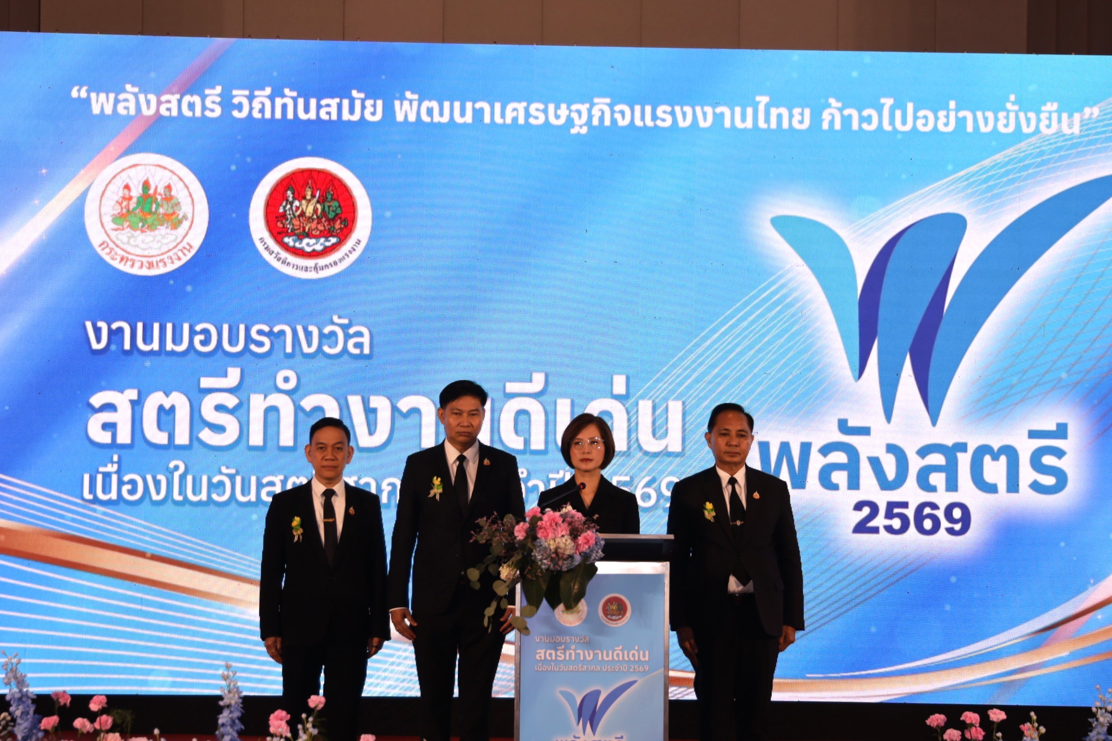 วันศุกร์ที่ 6 มีนาคม 2569 เวลา 10.00 น. นางสาวตรีนุช เทียนทอง รัฐมนตรีว่าการกระทรวงแรงงาน เป็นประธานในพิธีเปิดงานและมอบรางวัลสตรีทำงานดีเด่น เนื่องในวันสตรีสากล ประจำปี 2569 ณ โรงแรมมิราเคิล แกรนด์ คอนเวนชั่น กรุงเทพมหานคร โดยมี นางสาวบุปผา เรืองสุด รองปลัดกระทรวงแรงงาน เรือเอก สาโรจน์ คมคาย อธิบดีกรมสวัสดิการและคุ้มครองแรงงาน นายเกริกไกร นาสมยนต์ ที่ปรึกษากฎหมาย นายณัฐวุฒิ ภัทรประยูร ที่ปรึกษาวิชาการแรงงาน ผู้บริหารกระทรวงแรงงาน ผู้แทนหน่วยงานภาครัฐ ภาคเอกชน องค์กรแรงงาน นายจ้าง ลูกจ้าง และภาคีเครือข่ายที่เกี่ยวข้อง เข้าร่วมงานกว่า 400 คน นางสาวตรีนุช กล่าวว่า บทบาทของสตรีไทยในปัจจุบันได้รับการยอมรับและมีบทบาทสำคัญในทุกภาคส่วน ทั้งในฐานะผู้นำ ผู้บริหาร และผู้ปฏิบัติงานในภาครัฐ รัฐวิสาหกิจ และภาคเอกชน ข้อมูลจากรายงานของ UN Women ระบุว่า ประเทศไทยมีสัดส่วนของผู้บริหารระดับ CEO/MD ที่เป็นสตรีสูงถึง 24% และยังพบว่า มีสตรีไทยนั่งในตำแหน่ง CFO (Chief Financial Officer) สูงเป็นอันดับหนึ่งของโลก คือ ประมาณ 43% โดยในภาพรวมระดับผู้บริหารระดับสูง (Senior Leadership) ผู้หญิงไทยครองตำแหน่งอยู่ที่ 32% สะท้อนให้เห็นถึงบทบาทของผู้หญิงในการขับเคลื่อนเศรษฐกิจที่โดดเด่นอย่างมาก สอดคล้องกับโลกในปัจจุบันที่มีแนวคิดว่า ผู้หญิงเป็นพลังสำคัญของการขับเคลื่อนเศรษฐกิจ ที่เรียกว่า womenomics