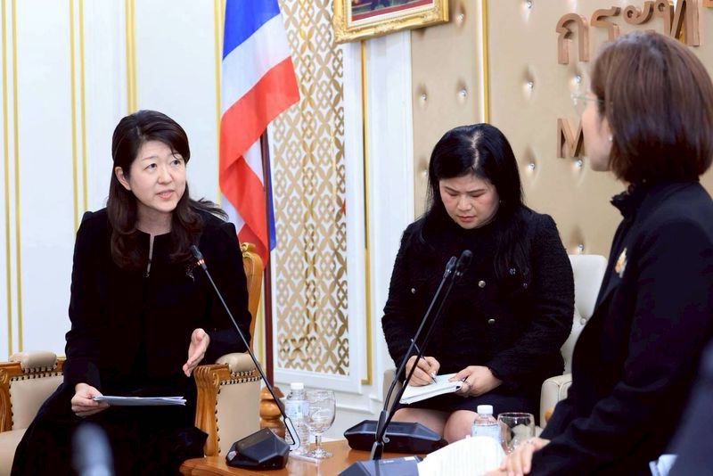 ด้าน Ms. Kaori Nakamura – Osaka ผู้อำนวยการสำนักงานแรงงานระหว่างประเทศประจำภูมิภาคเอเชียและแปซิฟิก กล่าวว่า ขอขอบคุณและแสดงความยินดีกับรัฐมนตรีว่าการกระทรวงแรงงานที่ได้รับตำแหน่ง และยินดีร่วมมือกับกระทรวงแรงงาน ในด้านต่างๆ โดยเฉพาะเรื่องการให้ความช่วยเหลือ จัดการปัญหาแรงงานข้ามชาติในพื้นที่จังหวัดบริเวณชายแดนไทย-กัมพูชา และเสนอรัฐมนตรีว่าการกระทรวงแรงงานในการพิจารณาเข้าร่วมสมาคมเครือข่ายความยุติธรรมสากลระดับโลก รวมถึงความร่วมมือในการผลักดันโครงการความร่วมมือภายใต้แผนงานระดับชาติว่าด้วยงานที่มีคุณค่าระหว่างสองหน่วยงานอีกด้วย