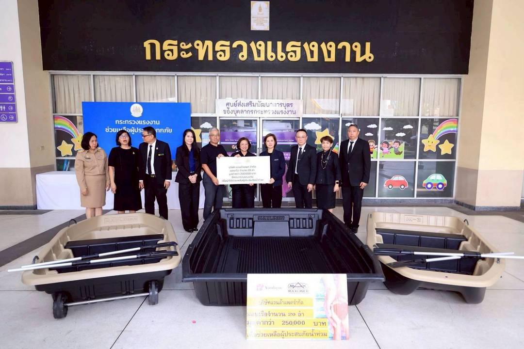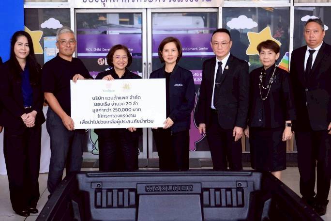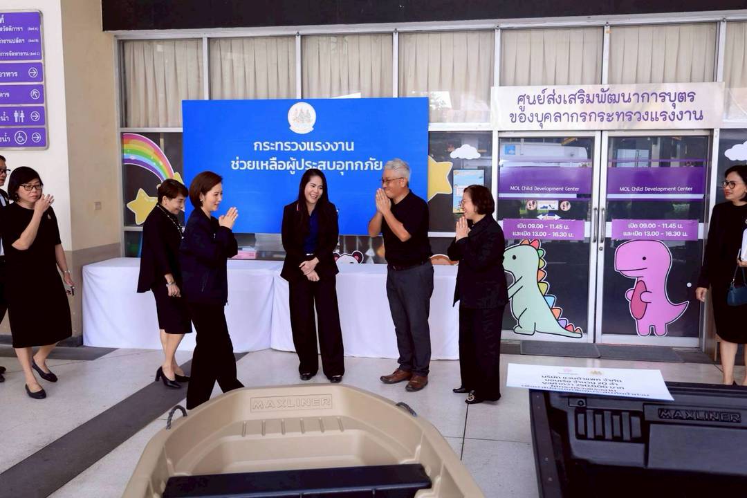 วันที่ 26 พฤศจิกายน 2568 เวลา 16.00 น. นางสาวตรีนุช เทียนทอง รัฐมนตรีว่าการกระทรวงแรงงาน รับมอบเรือจากผู้บริหารบริษัท แวนด้าแพค จำกัด จังหวัดชลบุรี นำโดย MR. Junya Yamaguchi ผู้อำนวยการฝ่ายพัฒนาธุรกิจ คุณเอื้อมพร รุจิเรขกุลวัฒน์ ผู้อำนวยการฝ่ายจัดซื้อ และคุณณัฏฐ์ภคนันท์ สุจริยะ ผู้จัดการแผนกทรัพยากรบุคคล ที่ได้นำเรือจำนวน 20 ลำ ประกอบด้วย เรือ 4 ที่นั่ง จำนวน 10 ลำ และเรือขนอุปกรณ์ จำนวน 10 ลำ เพื่อให้กระทรวงแรงงานสนับสนุนภารกิจช่วยเหลือผู้ประสบอุทกภัยในพื้นที่ภาคใต้ โดยมี นางสาวกรจิรัฎฐ์ พงจันทร์ศธร ผู้ช่วยปลัดกระทรวงแรงงาน และผู้บริหารระดับสูงกระทรวงแรงงาน ร่วมรับมอบด้วย ณ บริเวณโถงด้านล่าง อาคารกระทรวงแรงงาน