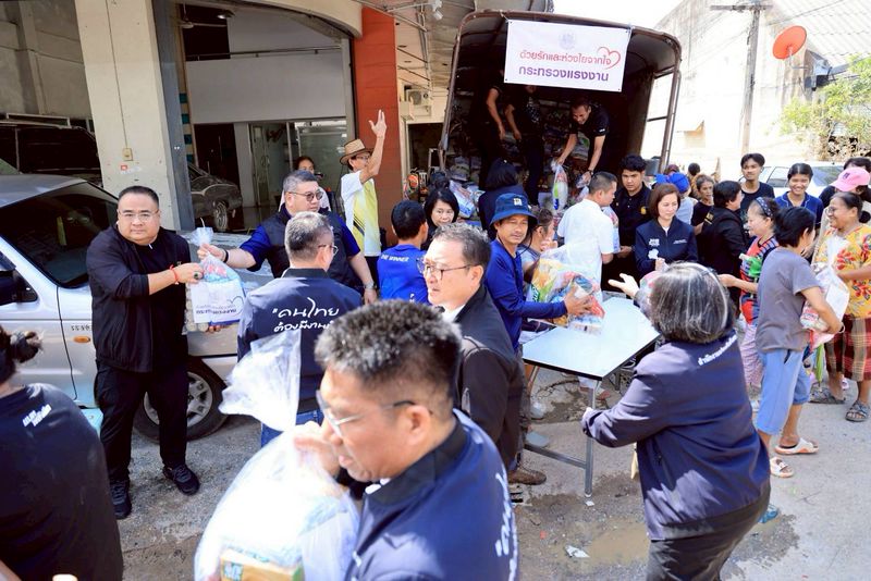 วันที่ 30 พฤศจิกายน 2568 นางสาวตรีนุช เทียนทอง รัฐมนตรีว่าการกระทรวงแรงงาน พร้อมด้วย พันตำรวจโท วรรณพงษ์ คชรักษ์ ปลัดกระทรวงแรงงาน นายสันติ นันตสุวรรณ รองปลัดกระทรวงแรงงาน ว่าที่ร้อยตรี สมศักดิ์ พรหมดำ ผู้ตรวจราชการกระทรวงแรงงาน นายศักดินาถ สนธิศักดิ์โยธิน ผู้ช่วยปลัดกระทรวงแรงงาน และ คณะผู้บริหารระดับสูงกระทรวงแรงงาน หัวหน้าส่วนราชการจังหวัดในพื้นที่ภาคใต้ มอบถุงยังชีพและให้กำลังใจประชาชนที่ได้รับผลกระทบจากเหตุอุทกภัยในอำเภอหาดใหญ่