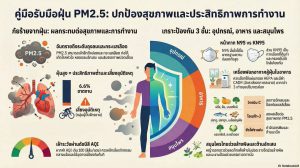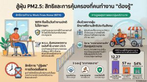 แอปพลิเคชันก่อนเริ่มงาน เพื่อเตรียมความพร้อมและหลีกเลี่ยงพื้นที่ที่มีความเข้มข้นของฝุ่นสูง และ ผู้ประกันตนมาตรา 33 และ 39 หากมีอาการเจ็บป่วยหรือไม่สบายจากการได้รับฝุ่น PM2.5 เช่น อาการในระบบทางเดินหายใจ ตาอักเสบ หรือผิวหนังอักเสบ สามารถเข้ารับการรักษาได้ “ฟรี” โดยไม่ต้องสำรองจ่าย ณ โรงพยาบาลตามสิทธิประกั นสังคม