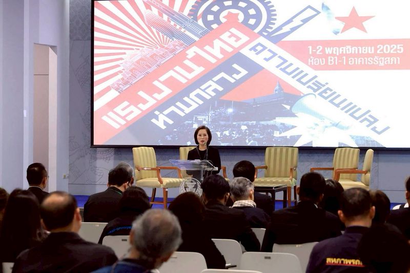 วันที่ 1 พฤศจิกายน 2568 เวลา 09.45 น.นางสาวตรีนุช เทียนทอง รัฐมนตรีว่าการกระทรวงแรงงาน กล่าวปาฐกถาพิเศษ ในหัวข้อ “ทิศทางการเปลี่ยนแปลงกระทรวงแรงงาน ภายใต้การเปลี่ยนแปลง”ในงานสัมมนาเรื่อง “แรงงานไทย ท่ามกลางความเปลี่ยนแปลง” ซึ่งจัดขึ้นโดย คณะกรรมาธิการการแรงงาน สภาผู้แทนราษฎร ร่วมกับ คณะกรรมาธิการการแรงงาน วุฒิสภา มูลนิธิพิพิธภัณฑ์แรงงานไทย และมูลนิธิฟรีดริค เอแบร์ท ประเทศไทย โดยมี นายสมชาย มรกตศรีวรรณ หัวหน้าผู้ตรวจราชการกระทรวงแรงงาน เข้าร่วมด้วย ณ ห้องประชุมสัมมนา B1 – 1 ชั้น B1 อาคารรัฐสภา