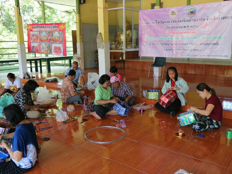– กิจกรรมพัฒนาทักษะฝีมือ หลักสูตร การฝึกอาชีพสานตะกร้าจากวัสดุรีไซเคิล (ต่อยอด) ณ ศาลาการเปรียญวัดคลองมะกอก ม.6 ต.บางพลับ อ.โพธิ์ทอง