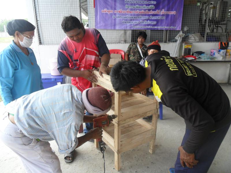 – กิจกรรมพัฒนาทักษะฝีมือ หลักสูตร การฝึกอาชีพการทำผลิตภัณฑ์จากไม้ (ชั้นวางของ) ณ เทศบาลตำบลเพชรเมืองทอง ต.แสวงหา อ.แสวงหา