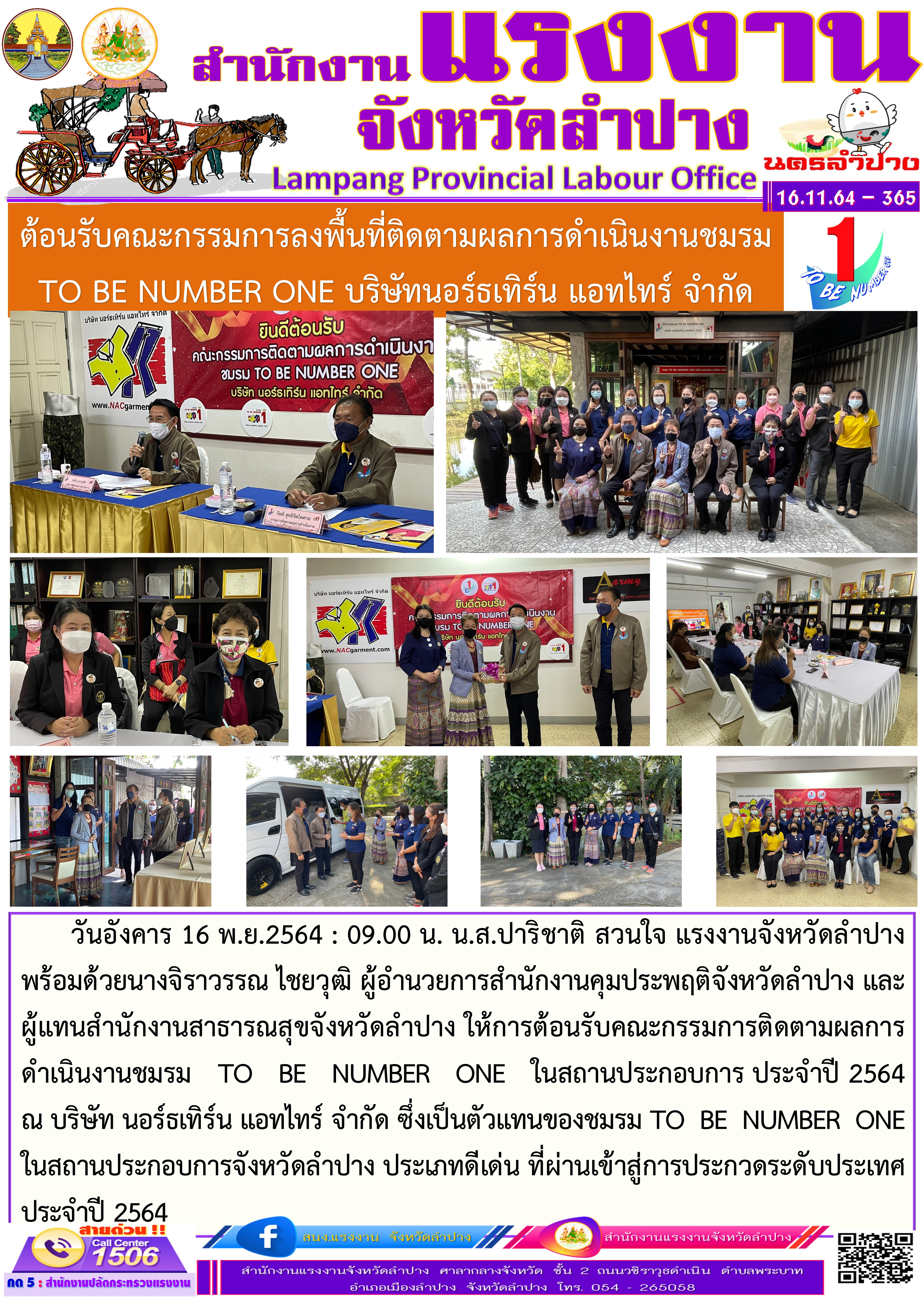 สรจ.ลำปาง ต้อนรับคณะกรรมการลงพื้นที่ติดตามผลการดำเนินงานชมรม TO BE NUMBER ONE บริษัทนอร์ธเทิร์น แอทไทร์ จำกัด
