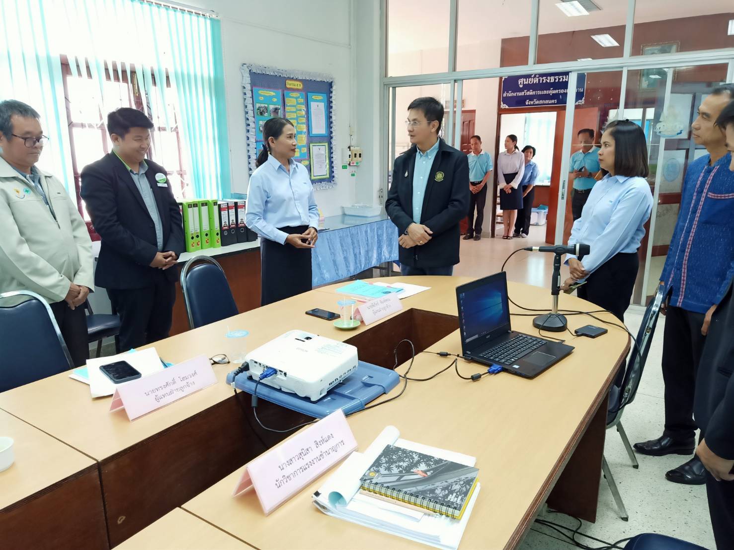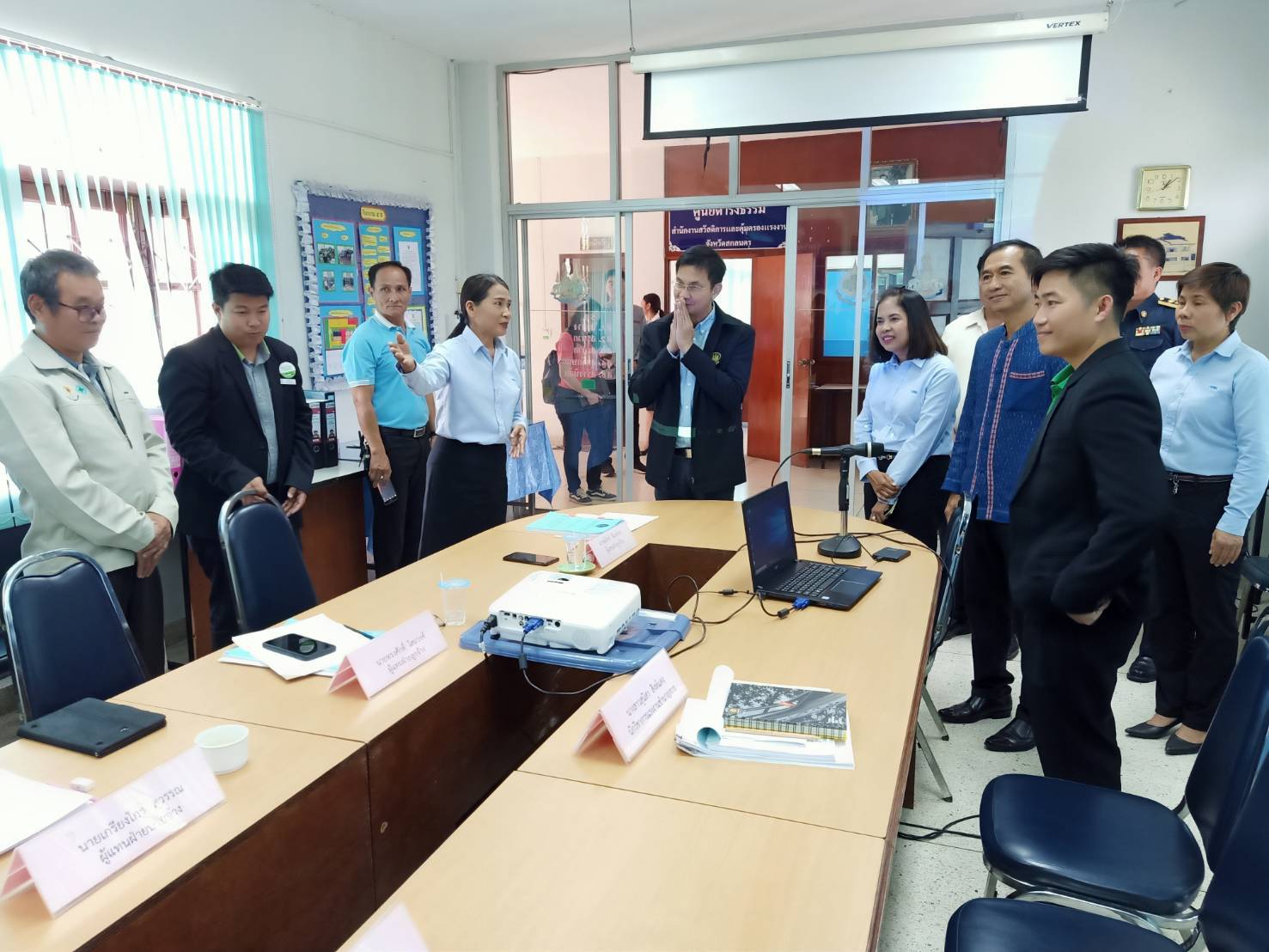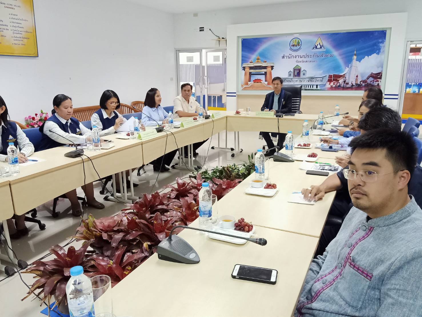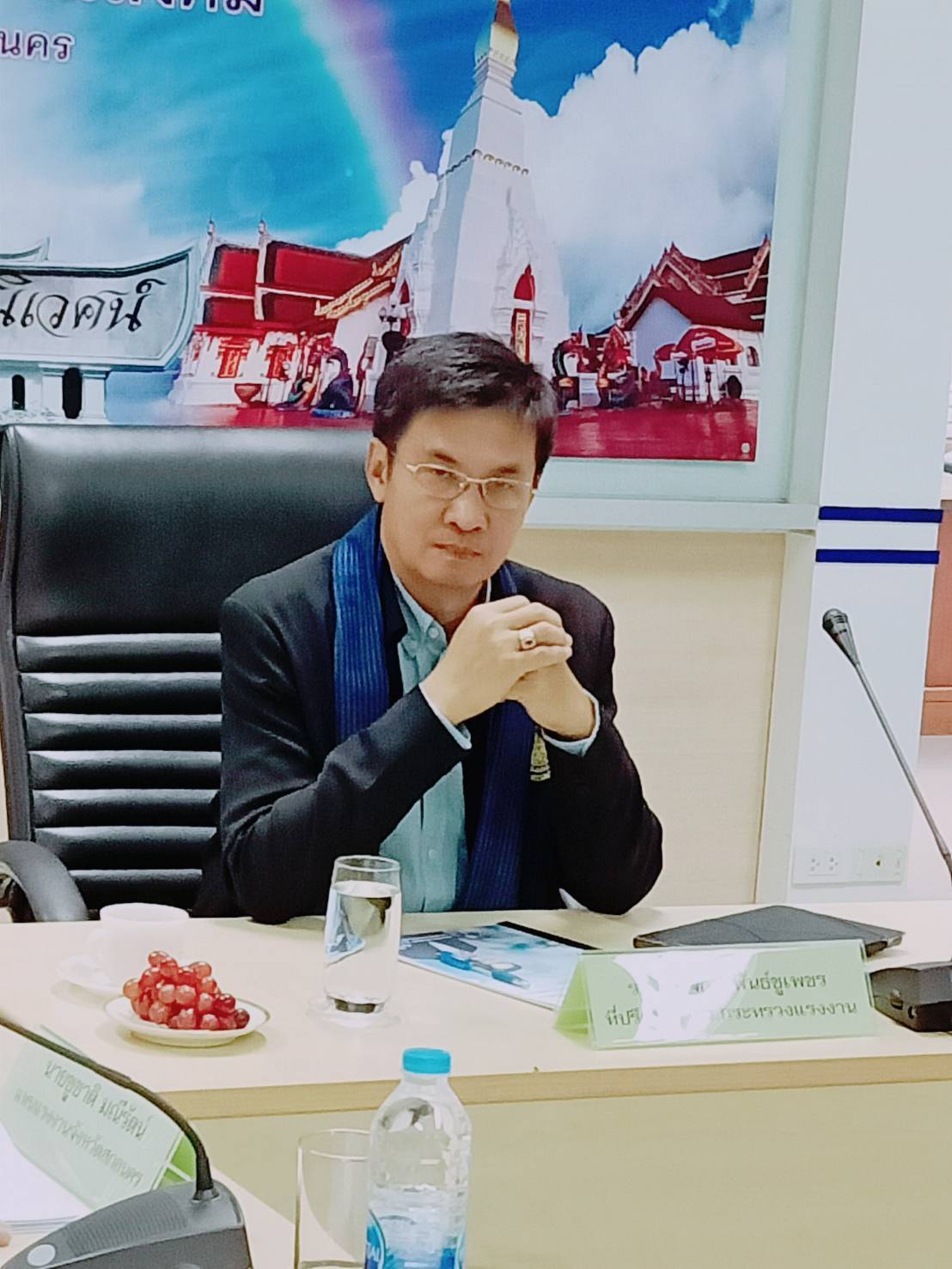 นอกจากนี้ รองศาสตราจารย์ ดร.จักษ์ฯ ได้เป็นประธานการประชุมมอบนโยบายหัวหน้าส่วนราชการสังกัดกระทรวงแรงงานในจังหวัดสกลนคร โดยมี นายชูชาติ มณีรัตน์ รักษาราชการแทนแรงงานจังหวัดสกลนคร นายวิสูตร จ้อนเมือง จัดหางานจังหวัดสกลนคร นายวิเชียร เศวตจันฤกษ์ ผู้อำนวยการสำนักงานพัฒนาฝีมือแรงงานสกลนคร นางสาวสุกัลยา แก้วสม สวัสดิการและคุ้มครองแรงงานจังหวัดสกลนคร และนางบุญเรือง โจรนศิริ รักษาราชการแทนประกันสังคมจังหวัดสกลนคร พร้อมเจ้าหน้าที่หน่วยงานสังกัดกระทรวงแรงงาน รับมอบนโยบาย ณ สานักงานประกันสังคมจังหวัดสกลนคร