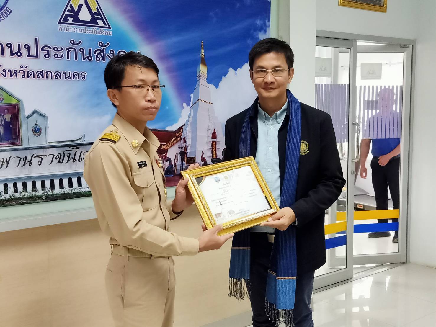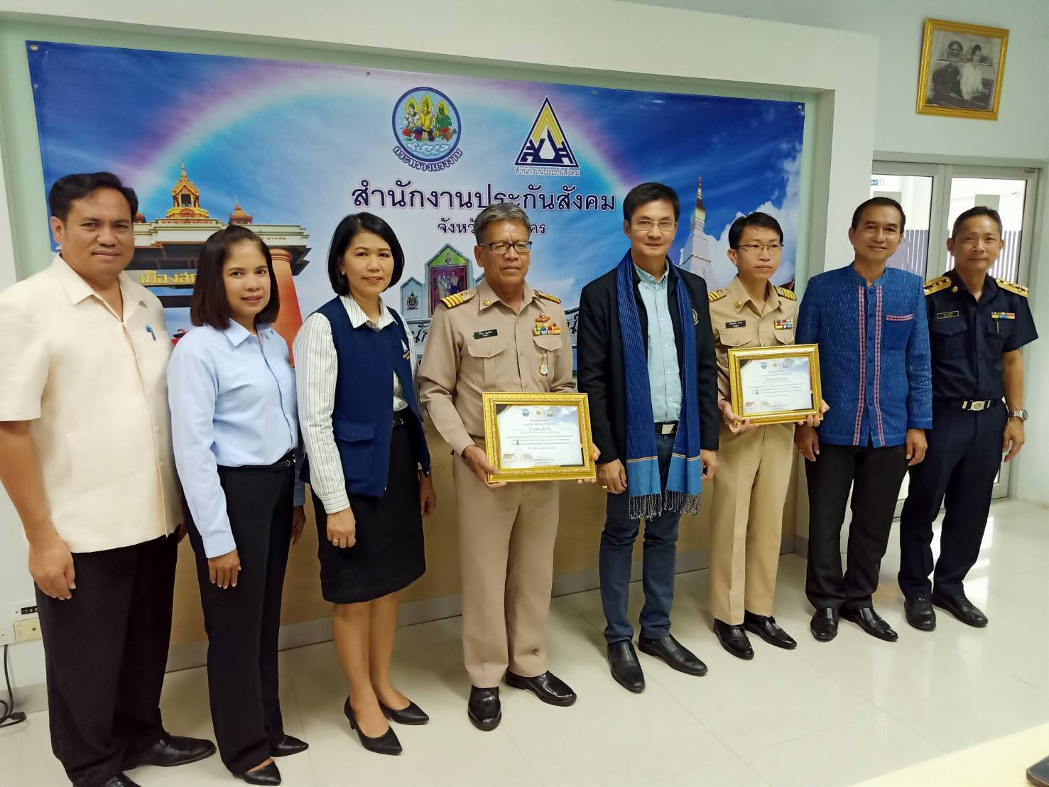 วันที่ ๑๓ กุมภาพันธ์ ๒๕๖๓ เวลา ๑๓.๐๐ น. รองศาสตราจารย์ ดร.จักษ์ พันธ์ชูเพชร ที่ปรึกษารัฐมนตรีว่าการกระทรวงแรงงาน ตรวจเยี่ยมการดำเนินงานของสำนักงานพัฒนาฝีมือแรงงานสกลนคร โดยมี นายวิเชียร เศวตจันฤกษ์ ผู้อำนวยการสำนักงานพัฒนาฝีมือแรงงานสกลนคร ให้การต้อนรับและเยี่ยมชม พร้อมปลูกต้นไม้ (ต้นรวงผึ้ง) และเยี่ยมชมการทดสอบมาตรฐานฝีมือแรงงานแห่งชาติ (ช่างไฟฟ้า) ณ ตำบลห้วยยาง อำเภอเมืองสกลนคร จากนั้นได้เดินทางไปยังตำบลธาตุเชิงชุม อำเภอเมืองสกลนคร ตรวจเยี่ยมการดำเนินงานของสำนักงานสวัสดิการและคุ้มครองแรงงานจังหวัดสกลนคร โดยมี นางสาวสุกัลยา แก้วสม สวัสดิการและคุ้มครองแรงงานจังหวัดสกลนคร ให้การต้อนรับและเยี่ยมชม ซึ่งได้ชมกระบวนการรับคำร้องทุกข์ คร.๗ กระบวนการประเมิน สปก.ดีเด่นด้านแรงงานสัมพันธ์ดีเด่น ปี ๒๕๖๓ และรับฟังปัญหาอุปสรรคในการทำงานที่ผ่านมา ตรวจเยี่ยมการดำเนินงานของสำนักงานจัดหางานจังหวัดสกลนคร โดยมี นายวิสูตร จ้อนเมือง จัดหางานจังหวัดสกลนคร ให้การต้อนรับและเยี่ยมชม โดยได้ดูกระบวนการต่อใบอนุญาตทำงานของแรงงานต่างด้าว ระหว่างวันที่ ๑๖ ธ.ค. ๖๒ – ๖ ก.พ. ๖๓ มีแรงงานต่างด้าวมาดำเนินการต่อใบอนุญาตแล้ว ๑๔๓ ราย และตรวจเยี่ยมการดำเนินงานของสำนักงานประกันสังคมจังหวัดสกลนคร โดยมี นางบุญเรือง โจรนศิริ รักษาราชการแทนประกันสังคมจังหวัดสกลนคร ให้การต้อนรับและเยี่ยมชม โดยมีประชาชนมาใช้บริการส่งเงินสบทบ ม.๓๓ ม.๓๙ และ ม.๔๐ ซึ่งมีการสร้างการรับรู้และการเข้าถึงความคุ้มครองและสิทธิประโยชน์ ภายใต้ชื่อกลุ่ม “บวร” ได้แก่ บ้าน วัด โรงเรียน โรงงาน และราชการ พร้อมมอบใบประกาศนียบัตรแก่ผู้นำเครือข่ายผู้ประกันสังคมมาตรา ๔๐ หมู่บ้านประกันสังคม ๑๐๐% จำนวน ๒ ราย ได้แก่บ้านดอนจ้อก้อ และบ้านหนองบัวทอง