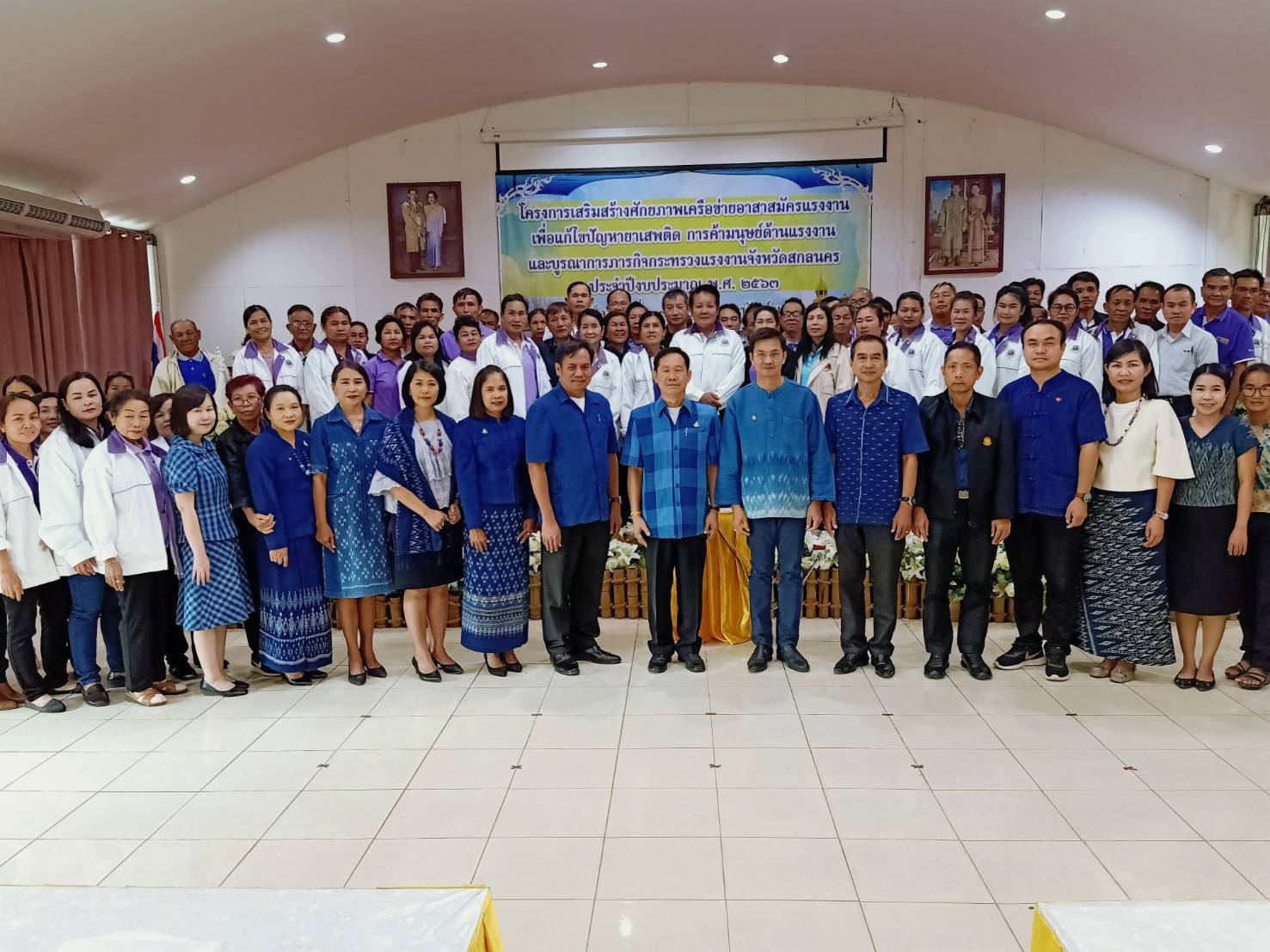 ทั้งนี้ โครงการเสริมสร้างศักยภาพเครือข่ายอาสาสมัครแรงงาน มีวัตถุประสงค์เพื่อเสริมสร้างองค์ความรู้ด้านแรงงาน อันจะเป็นประโยชน์ต่อการให้บริการด้านแรงงานของเครือข่ายอาสาสมัครแรงงาน บูรณาการงานด้านอาสาสมัครแรงงานระหว่างหน่วยงานในสังกัดกระทรวงแรงงาน กับเครือข่ายอาสาสมัครแรงงาน แลกเปลี่ยนประสบการณ์ในการปฏิบัติงานด้านอาสาสมัครแรงงาน ส่งผลให้เกิดการพัฒนาแนวทางการปฏิบัติงานที่ตอบสนองต่อนโยบายของรัฐบาล กระทรวงแรงงาน และจังหวัดได้อย่างมีประสิทธิภาพและเกิดประสิทธิผลอย่างสูงสุด ปัจจุบันจังหวัดสกลนครมีอาสาสมัครแรงงานระดับตำบล ครบทุกตำบล จำนวน 125 ตำบล จำนวน 125 คน