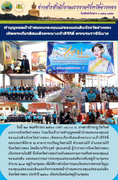 ทำบุญทอดผ้าป่าสมทบกองทุนแม่ของแผ่นดินจังหวัดอ่างทอง เทิดพระเกียรติสมเด็จพระนางเจ้าสิริกิติ์ พระบรมราชินีนาถ
