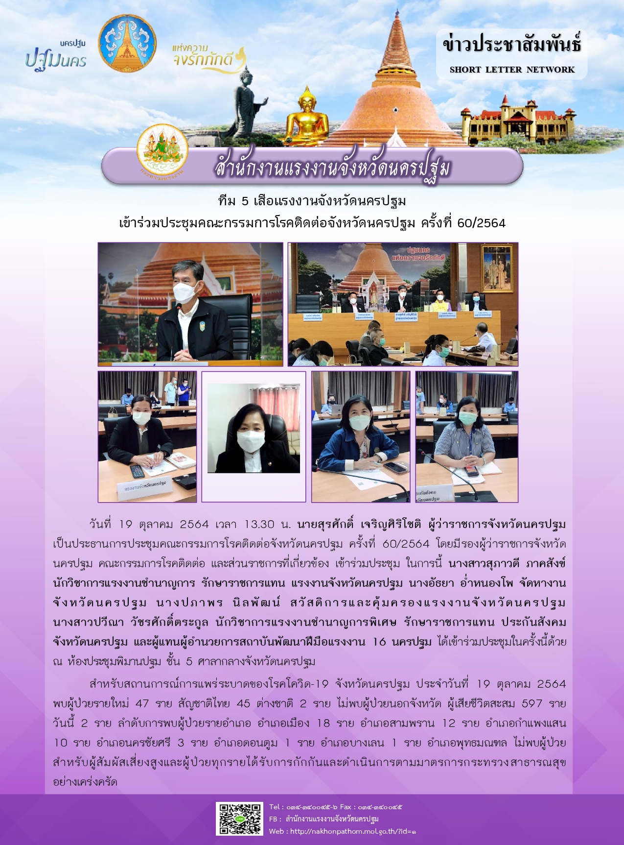 ทีม 5 เสือแรงงานเข้าร่วมประชุมคณะกรรมการโรคติดต่อจังหวัดนครปฐม ครั้งที่ 60/2564