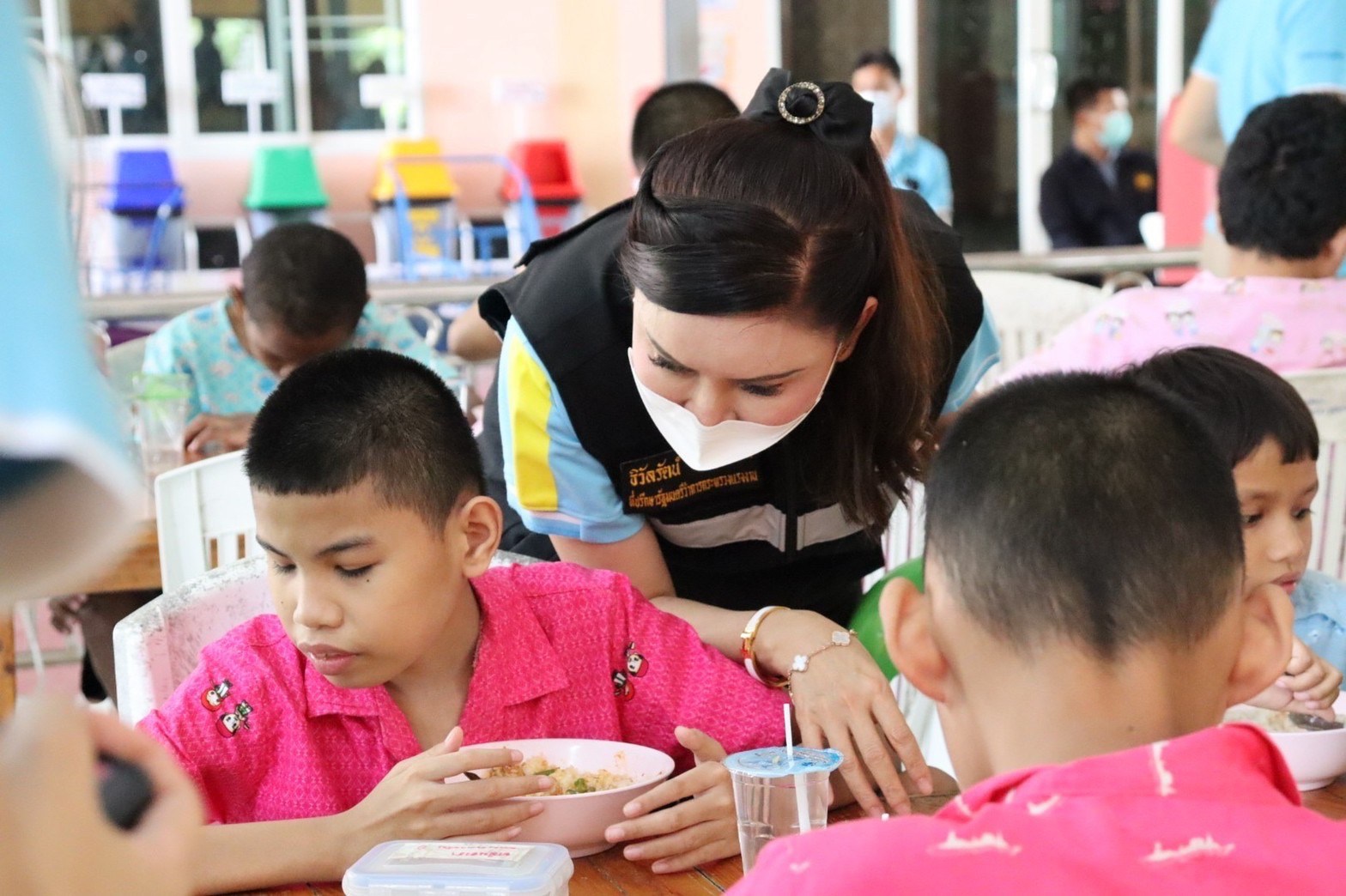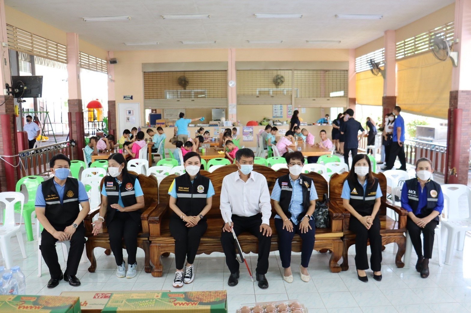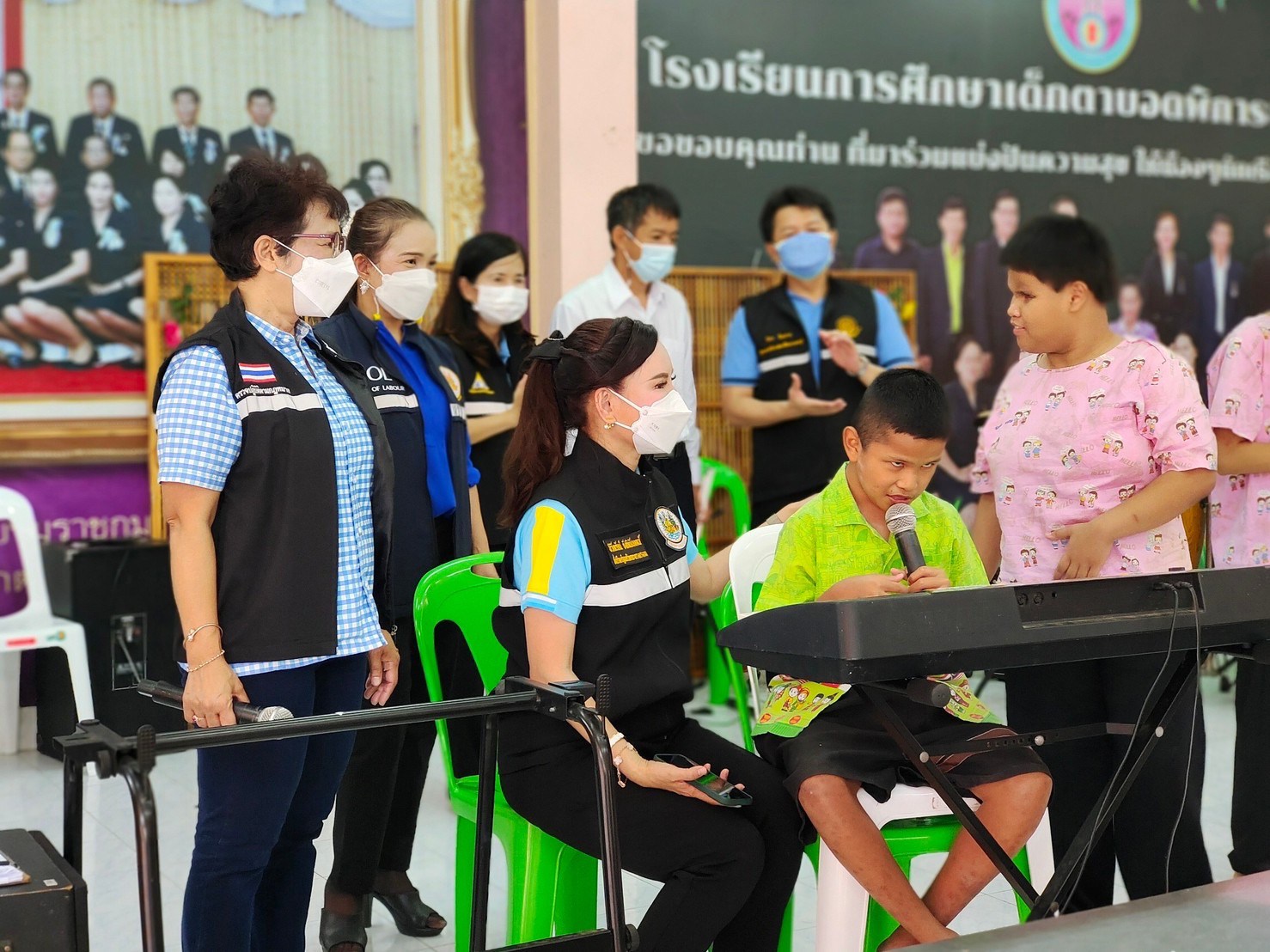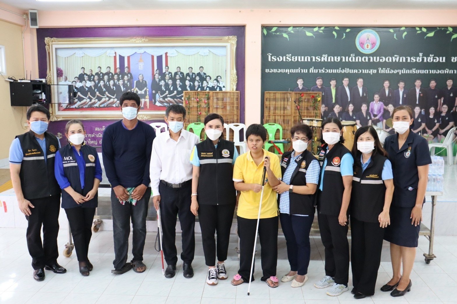 วันที่ 26 สิงหาคม 2565 เวลา 11.30 น. ที่โรงเรียนการศึกษาเด็กตาบอดพิการซ้ำซ้อนชะอำ อำเภอชะอำ จังหวัดเพชรบุรี นางธิวัลรัตน์ อังกินันทน์ ที่ปรึกษารัฐมนตรีว่าการกระทรวงแรงงาน นำทีมหัวหน้าส่วนราชการพร้อมด้วยข้าราชการและเจ้าหน้าที่หน่วยงานในสังกัดกระทรวงแรงงานจังหวัดเพชรบุรี ทำกิจกรรม “ปันรักให้น้องผู้พิการทางสายตาซ้ำซ้อน” ด้วยการเลี้ยงอาหารกลางวันให้กับเด็กผู้พิการทางสายตาซ้ำซ้อน จำนวน 60 คน รวมทั้งมอบเครื่องอุปโภค บริโภคให้กับโรงเรียนฯ เพื่อใช้ประกอบอาหาร กิจกรรมดังกล่าวเพื่อเฉลิมพระเกียรติสมเด็จพระนางเจ้าสิริกิติ์ พระบรมราชินีนาถ พระบรมราชชนนีพันปีหลวง