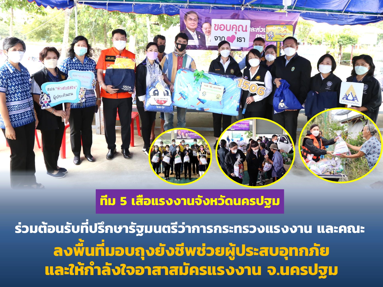 ที่ปรึกษารัฐมนตรีว่าการกระทรวงแรงงาน และคณะ ตรวจเยี่ยมให้กำลังใจและมอบถุงยังชีพแก่ผู้ประสบอุทกภัยจังหวัดนครปฐม