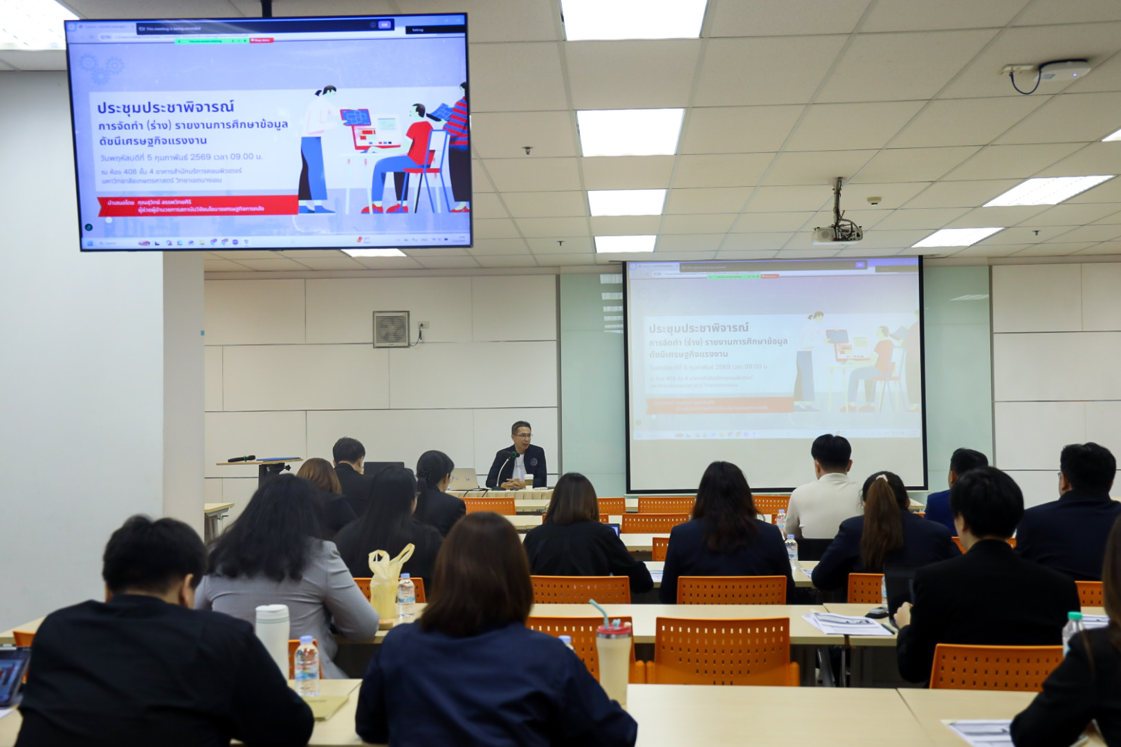 วันที่ 5 กุมภาพันธ์ 2569 เวลา 09.00 น. นายณัฐวุฒิ ภัทรประยูร ที่ปรึกษาวิชาการแรงงาน เป็นประธานพิธีเปิด การประชุมประชาพิจารณ์ (ร่าง) รายงานการศึกษาข้อมูลดัชนีเศรษฐกิจแรงงานและดัชนีความเชื่อมั่นด้านแรงงานโดยมี นายสุวิทย์ สรรพวิทยศิริ ผู้ช่วยผู้อำนวยการสถาบันวิจัยนโยบายเศรษฐกิจการคลัง กล่าวรายงาน ผู้แทนหน่วยงานภาครัฐ ผู้แทนหน่วยงานในสังกัดกระทรวงแรงงาน ภาคเอกชน องค์กรแรงงาน สถาบันการศึกษา นักวิชาการ เข้าร่วมด้วย ณ ห้อง 408 ชั้น 4 อาคารสำนักบริการคอมพิวเตอร์ มหาวิทยาลัยเกษตรศาสตร์ วิทยาเขตบางเขน ถนนงามวงศ์วาน แขวงลาดยาว เขตจตุจักร กรุงเทพมหานคร