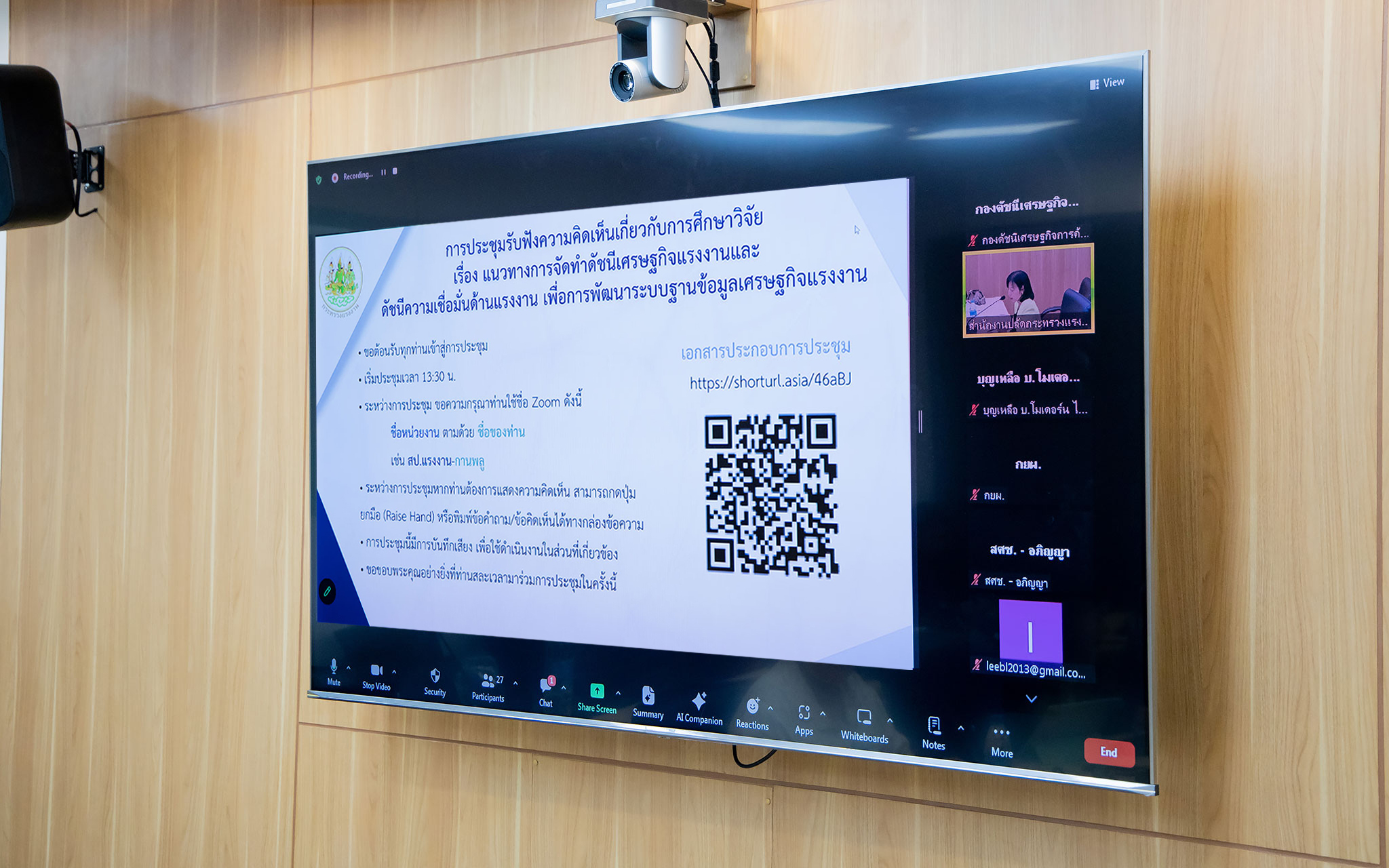 วันที่ 24 มิถุนายน 2567 เวลา 13.30 น. นางนภสร ทุ่งสุกใส ที่ปรึกษาวิชาการแรงงาน เป็นประธานการประชุมรับฟังความคิดเห็นเกี่ยวกับการศึกษาวิจัยเรื่อง “แนวทางการจัดทำดัชนีเศรษฐกิจแรงงานและดัชนีความเชื่อมั่นด้านแรงงานเพื่อการพัฒนาระบบฐานข้อมูลเศรษฐกิจแรงงาน” ครั้งที่ 2 ผ่านสื่ออิเล็กทรอนิกส์ (Zoom meeting) ณ ห้องประชุมกองยุทธศาสตร์และแผนงาน ชั้น 13 อาคารกระทรวงแรงงาน