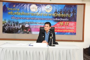 รศ.ดร.จักษ์ฯ กล่าวต่อว่า กระทรวงแรงงาน เล็งเห็นความสำคัญในการพัฒนาศักยภาพอาสาสมัครแรงงาน ให้มีความรอบรู้ในภารกิจด้านแรงงานในเรื่องใหม่ๆ เพื่อนำไปถ่ายทอดให้กับประชาชนในพื้นที่ได้รับบริการตรงกับความต้องการ รวมทั้งยังสนับสนุนให้มีการบูรณาการการทำงานร่วมกันของหน่วยงานในสังกัดกระทรวงแรงงานเพื่อตอบสนองนโยบายในการขับเคลื่อนภารกิจด้านแรงงานไปสู่ประชาชนในพื้นที่ได้อย่างมีประสิทธิภาพและเกิดประโยชน์สูงสุดต่อประชาชน ขอขอบคุณส่วนราชการสังกัดกระทรวงแรงงาน เจ้าหน้าที่ทุกท่านที่มีส่วนเกี่ยวข้องในการจัดประชุมเชิงปฏิบัติการฯ ครั้งนี้ และขอเป็นกำลังใจให้อาสาสมัครแรงงานทุกท่าน ได้นำความรู้ แลกเปลี่ยนประสบการณ์จากวิทยากร และให้ความร่วมมือในการทำกิจกรรมต่างๆ ให้สำเร็จผล เพื่อนำไปพัฒนาตนเองในการให้บริการภารกิจด้านแรงงาน และอื่นๆ ที่ได้รับมอบหมายอย่างเต็มกำลังความสามารถ และทำงานส่วนรวมอย่างมีความสุขเพื่อประโยชน์แก่พี่น้องประชาชน