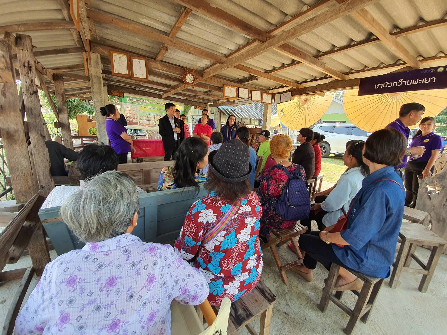 ในช่วงบ่าย ที่ปรึกษารัฐมนตรีว่าการกระทรวงแรงงาน ตรวจเยี่ยมกลุ่มวิสาหกิจชุมชน ผลิตภัณฑ์บัวกว๊านพะเยา จำนวน 19 คน ณ 69 ม.10 บ้านห้วยเคียน ต.ท่าจาปี อ.เมืองพะเยา จ.พะเยา ตรวจเยี่ยมกลุ่มหัตถกรรมล้านนาสันปูเลย (กลุ่มผู้สูงอายุ) จำนวน 46 คน ณ 118 ม.3 บ้านสันป่าม่วง ต.สันป่าม่วง อ.เมืองพะเยา จ.พะเยา ตรวจเยี่ยมเครือข่ายประกันสังคมมาตรา 40 นางประภา เครืออินทร์ และทีมเครือข่าย ประกันสังคมที่ได้รับรางวัลชนะเลิศ “โล่เกียรติคุณและทุนพัฒนาเครือข่ายประกันสังคม ภาคสมัครใจ” ตามโครงการ 1 ตำบล 1 หมู่บ้าน ร่วมสร้างสรรค์พัฒนาเครือข่าย ประกันสังคมภาคสมัครใจเข้มแข็ง (SSO Star Service Award 2019) ณ วัดบ่อแฮ้ว ต.แม่ใส อ.เมืองพะเยา จ.พะเยา และ ตรวจเยี่ยมศูนย์บริการคนพิการทั่วไป ณ โรงพยาบาลส่งเสริมสุขภาพตำบลบ้านถ้ำ อำเภอดอกคำใต้ จังหวัดพะเยา