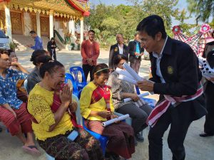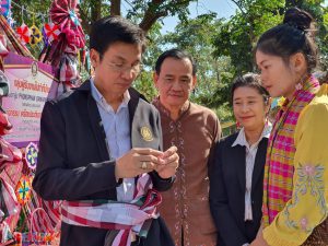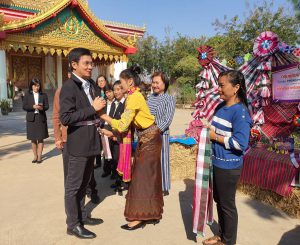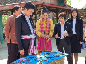 วันที่ ๒๕ ธันวาคม ๒๕๖๒ รศ.ดร.จักษ์ พันธ์ชูเพชร ที่ปรึกษารัฐมนตรีว่าการกระทรวงแรงงาน เดินทางลงพื้นที่เพื่อตรวจเยี่ยมกลุ่มอาชีพการรับงานไปทำที่บ้าน “พองพรรณ ออนะเม้นท์” โดยมีนางคำพอง พินิจโชติ อาสาสมัครแรงงานตำบลห้วยโพธิ์ ประธานกลุ่มฯ และสมาชิก ให้การต้อนรับ ณ บ้านดอนม่วง หมู่ที่ ๙ ตำบลห้วยโพธิ์ อำเภอเมือง จังหวัดกาฬสินธุ์