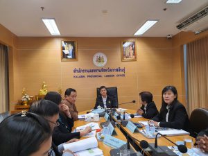 จากนั้น รศ.ดร.จักษ์ พันธ์ชูเพชร ที่ปรึกษารัฐมนตรีว่าการกระทรวงแรงงาน ได้เป็นประธานการประชุมมอบนโยบายและแนวทางการทำงานให้กับหน่วยงานสังกัดกระทรวงแรงงานในจังหวัดกาฬสินธุ์ ณ ห้องประชุมสำนักงานแรงงานจังหวัดกาฬสินธุ์ ศาลากลางจังหวัดกาฬสินธุ์ ชั้น ๓