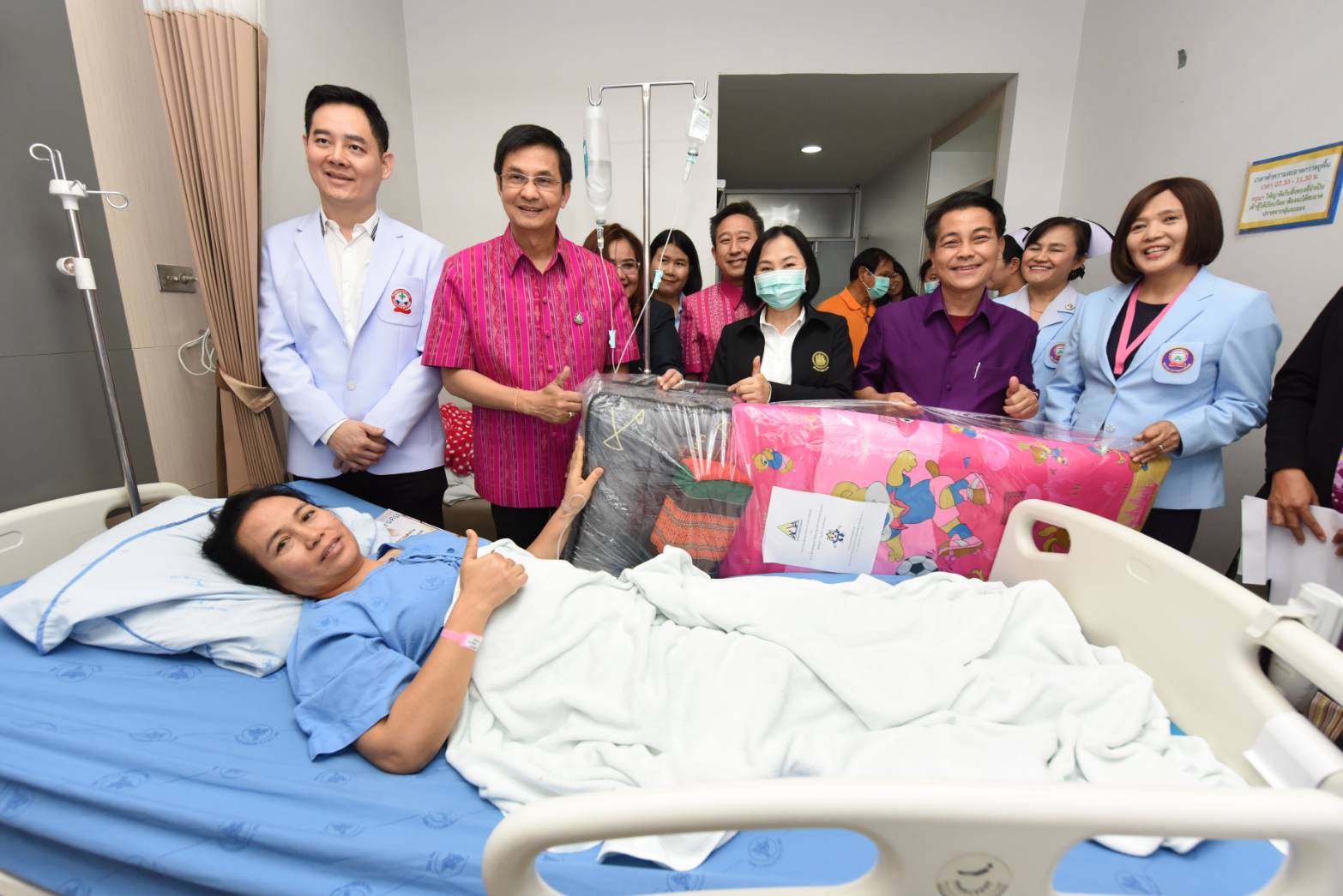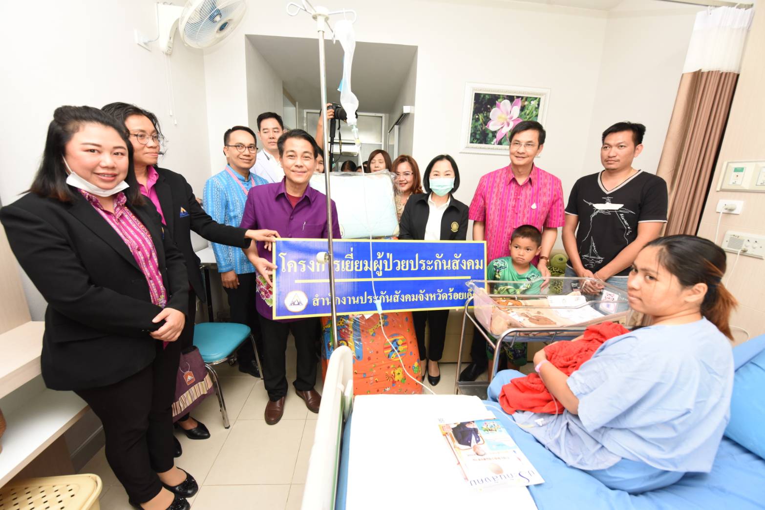 วันที่ ๒๘ กุมภาพันธ์ ๒๕๖๓ เวลา ๑๔.๓๐ น. รองศาสตราจารย์ ดร.จักษ์ พันธ์ชูเพชร ที่ปรึกษารัฐมนตรีว่าการกระทรวงแรงงาน เยี่ยมให้กำลังใจและมอบของขวัญผู้ประกันตน จำนวน ๓ ราย ได้แก่ นางวรรณภา แระเสริฐสังข์ ผ่าตัดนิ่ว นางสาวพิญาฎา วัฒนเลิศโรจน์ คลอดบุตร/ทำหมัน และนางสาวกฤษรา นามบุญลือ คลอดบุตร โดยมี นางสาวไพลิน จินดามณีพร ผู้ตรวจราชการสำนักงานประกันสังคม ร่วมเยี่ยมให้กำลังใจ นายเรวัต พิพัฒวงศ์เจริญ ประกันสังคมจังหวัดร้อยเอ็ด นำเยี่ยมผู้ประกันตน ณ โรงพยาบาลร้อยเอ็ด อำเภอเมือง จังหวัดร้อยเอ็ด