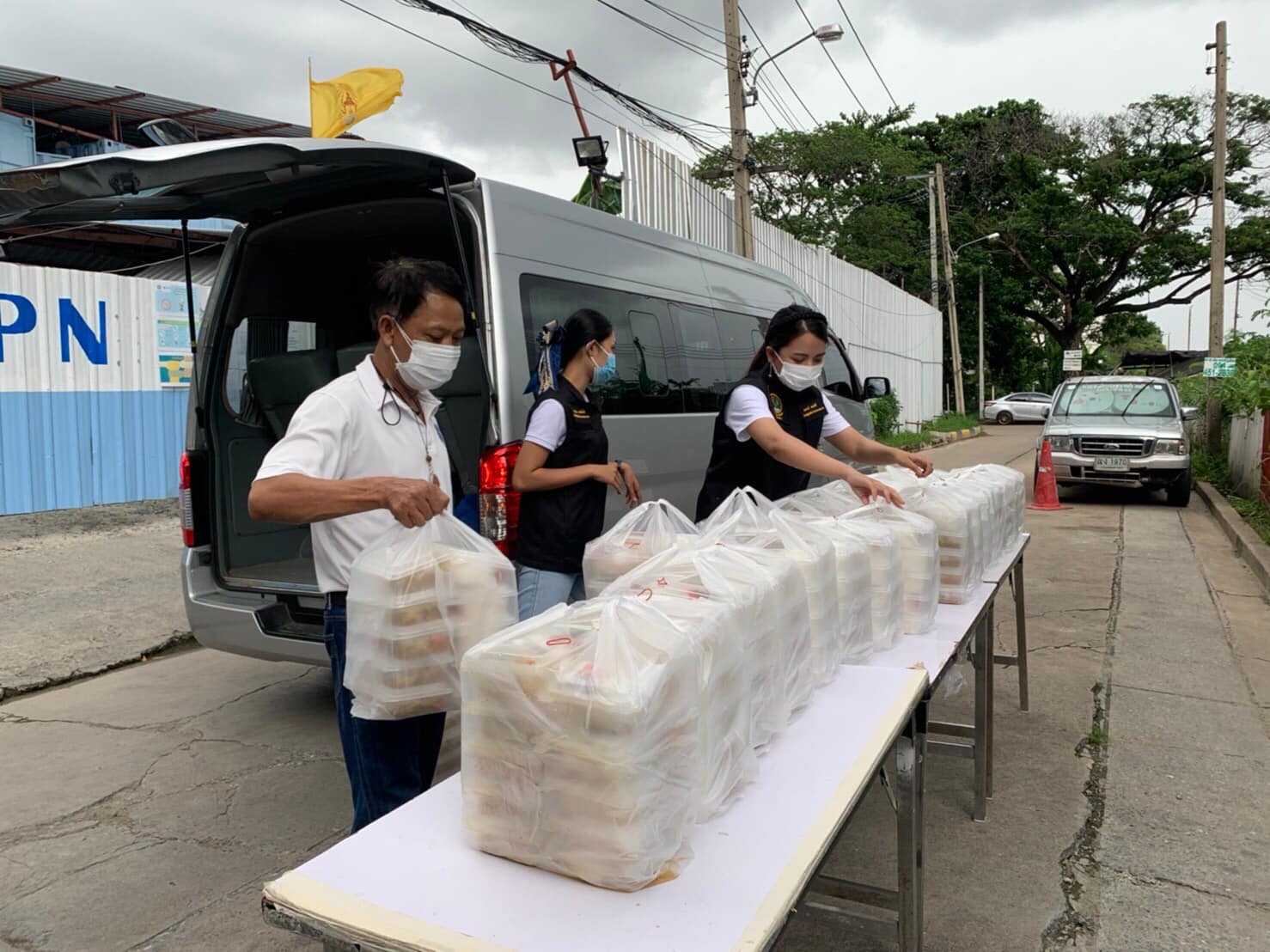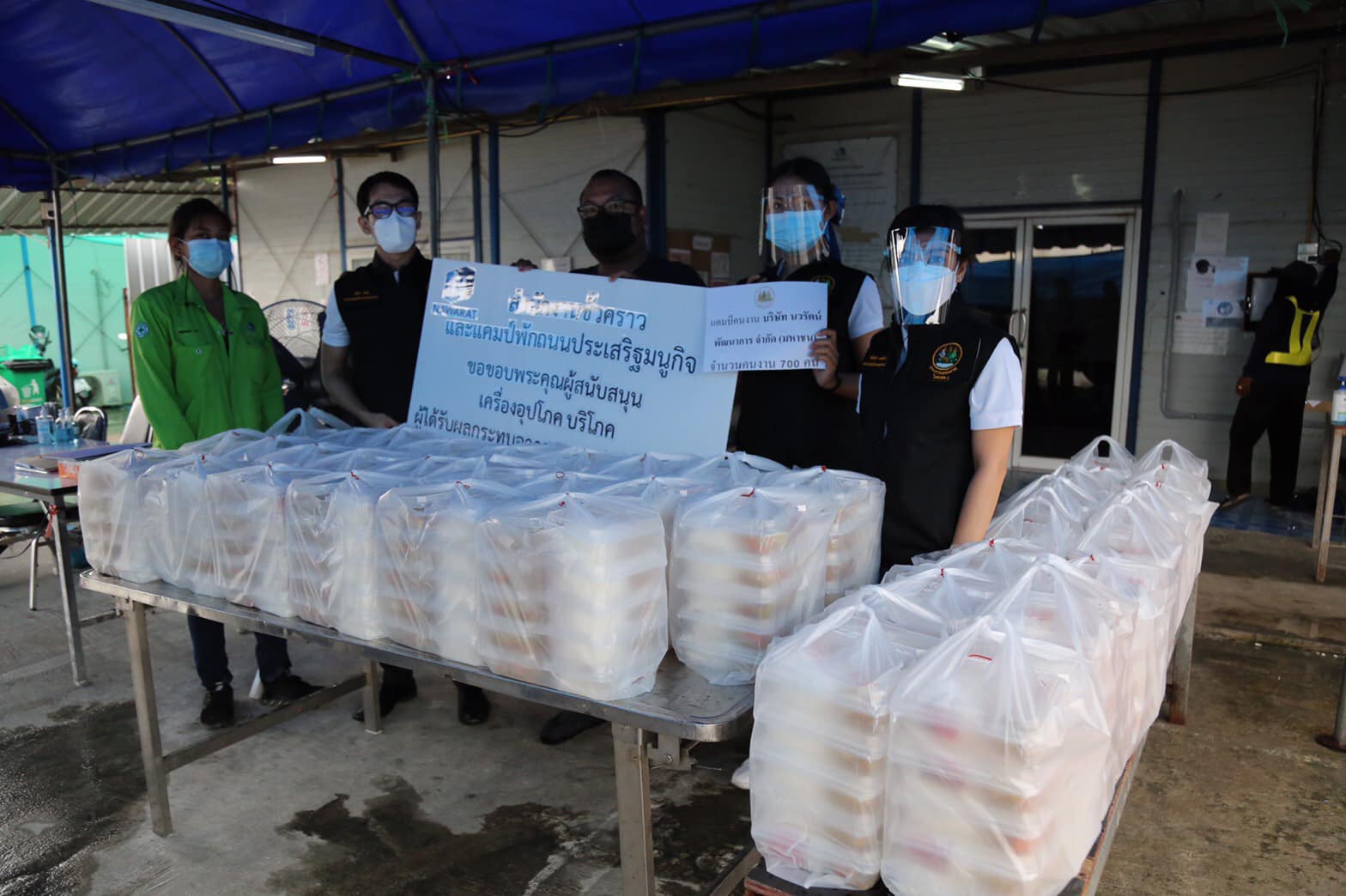 วันที่ 25 กรกฎาคม 2564 ศาสตราจารย์ นฤมล ภิญโญสินวัฒน์ รัฐมนตรีช่วยว่าการกระทรวงแรงงาน เปิดเผยว่า จากสถานการณ์การแพร่ระบาดของโควิด-19 ทำให้แคมป์คนงานถูกสั่งปิดตามมาตรการควบคุมการแพร่ระบาดของเชื้อไวรัสโควิด-19 โดยมีคำสั่งหยุดก่อสร้างและห้ามเคลื่อนย้ายแรงงานเป็นระยะเวลา 1 เดือน เพื่อควบคุมการแพร่ระบาด ในคลัสเตอร์แคมป์คนงาน ซึ่งตนเองได้ส่งทีมงานนำข้าวกล่องไปส่งมอบให้ยังแคมป์คนงานต่าง ๆ ตั้งแต่วันที่ 22 กรกฎาคม 2564 ที่ผ่านมา จนถึงวันนี้ได้ส่งมอบข้าวกล่องไปยังแคมป์คนงานแล้วรวม 12 แห่ง ประกอบด้วย แห่งที่ 1 แคมป์คนงานบริษัท ทวีพรเทคโนโลยี จำกัด บริเวณข้างโรงแรมมณเฑียร ริเวอร์ไซด์ แห่งที่ 2 แคมป์คนงานบริษัท ซินเทค เทคโนโลยี คอนสตรัคชั่น จำกัด บริเวณซอยมไหสวรรย์ 6 แห่งที่ 3 แคมป์คนงานบริษัท ซินเทค จำกัด (มหาชน) บริเวณสามแยกยานนาวา แห่งที่ 4 แคมป์คนงานโรงเรียนเตรียมอุดมศึกษาพัฒนาการยานนาเวศ แห่งที่ 5 แคมป์คนงาน บริษัท อิตาเลียนไทย ดีเวล๊อปเมนต์ จำกัด (มหาชน) บริเวณข้างหอศิลปะวัฒนธรรมแห่งกรุงเทพมหานคร แห่งที่ 6 แคมป์คนงานบริษัท สยามมิทัล คอน จำกัด บริเวณซอยอินทามะระ 15 แห่งที่ 7 แคมป์คนงานบริษัท วิศวภัทร์ จำกัด บริเวณซอยวิภาวดี 1 แห่งที่ 8 บริษัท นวรัตน์พัฒนาการ จำกัด บริเวณแขวงรามอินทรา เขตคันนายาว แห่งที่ 9 แคมป์คนงานบริษัท พรพระนคร จำกัด บริเวณซอยรามคำแหง 7