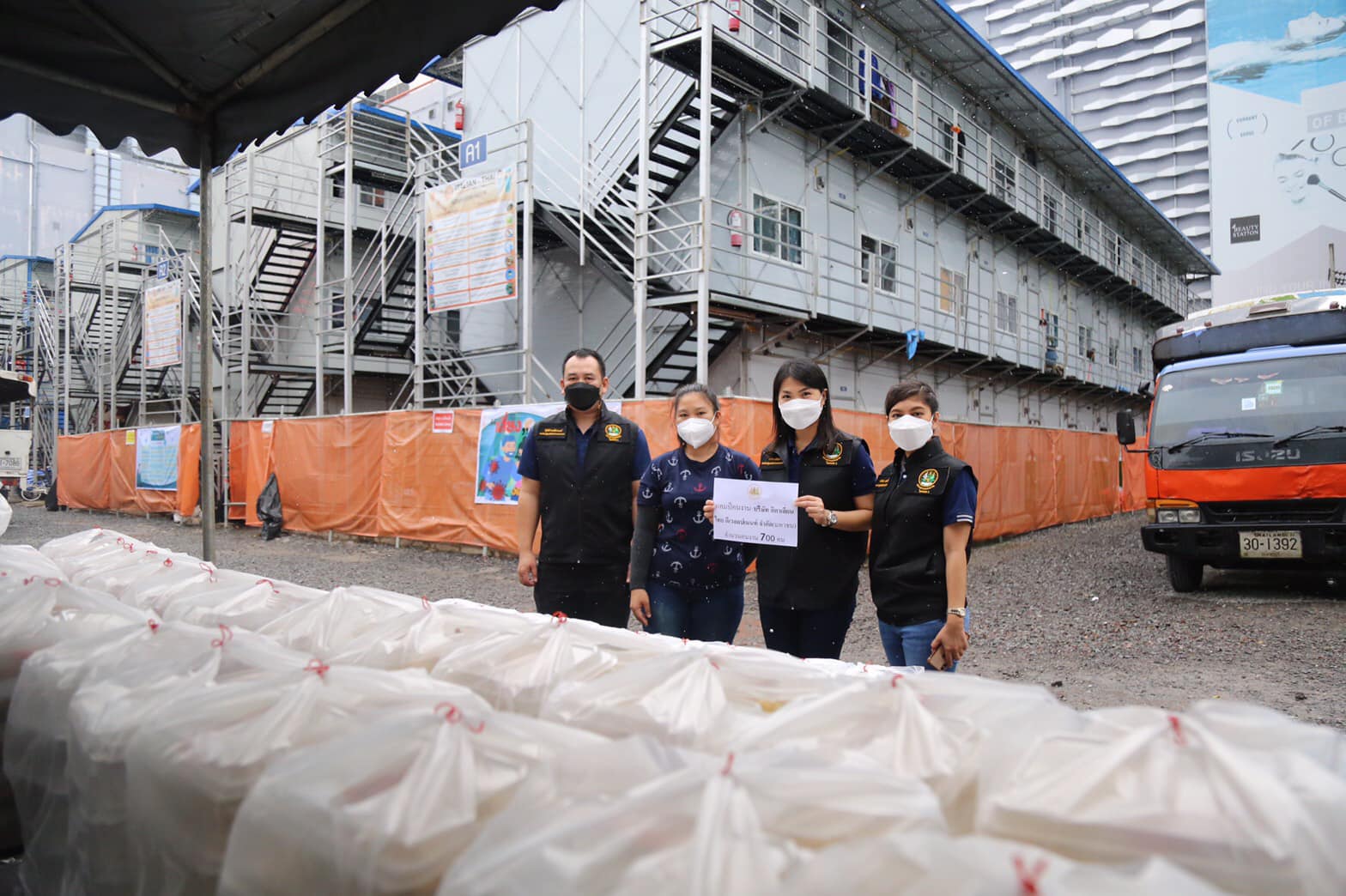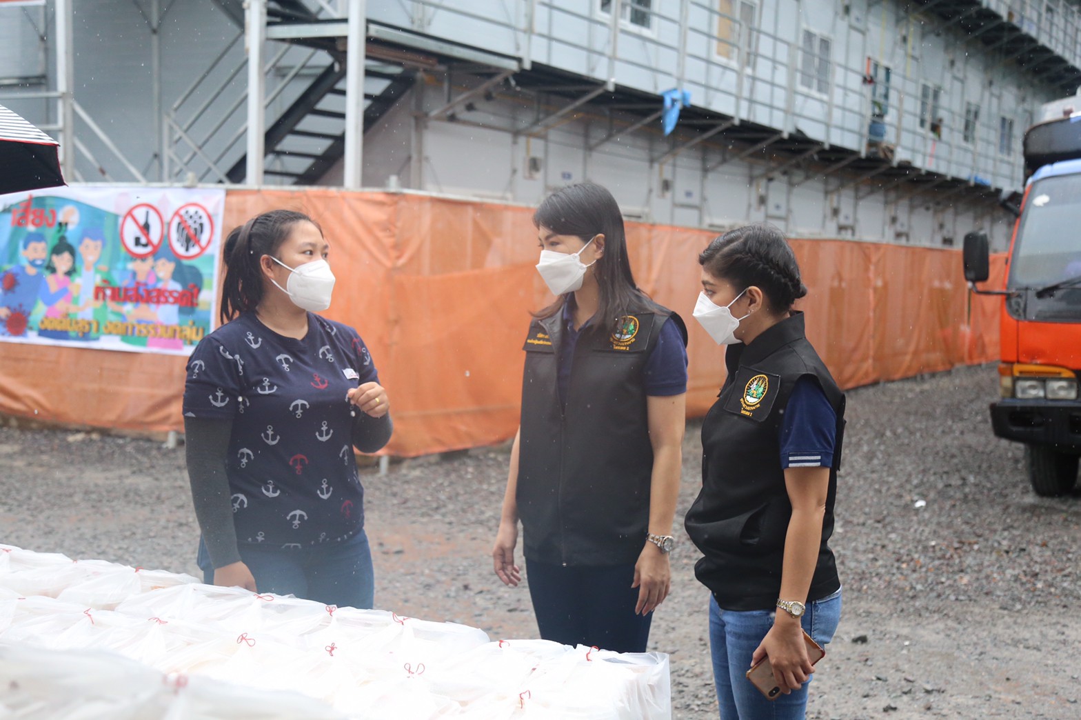 คุณกัลย์สุดา ยะมา พนักงาน บริษัท อิตาเลียนไทย ดีเวล๊อปเมนต์ จำกัด (มหาชน) แคมป์พระราม 9 กล่าวว่า ทุกวันบริษัทจะจัดเตรียมอาหารสำหรับพนักงานในแคมป์ครบ 3 มื้อ แต่จะมีบางมื้อที่หน่วยงานภาครัฐได้เข้ามาให้การสนับสนุน ซึ่งในวันนี้ต้องขอขอบคุณกระทรวงแรงงานเป็นอย่างยิ่งที่ได้ร่วมเป็นส่วนหนึ่งในการบรรเทาความเดือดร้อน สำหรับการป้องกันการแพร่ระบาดของโรคโควิด-19 บริษัทฯ มีการตรวจคัดกรองเชิงรุก โดยจะแบ่งโซนพื้นที่เป็นสัดส่วนสำหรับผู้ติดเชื้อและผู้ที่อยู่ในกลุ่มเสี่ยง หากพบผู้ติดเชื้อจะมีจุดพักคอยเพื่อนำตัวไปทำการรักษาต่อไป