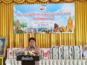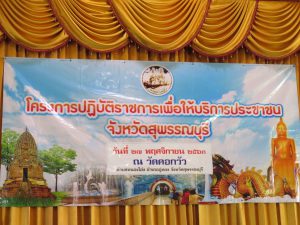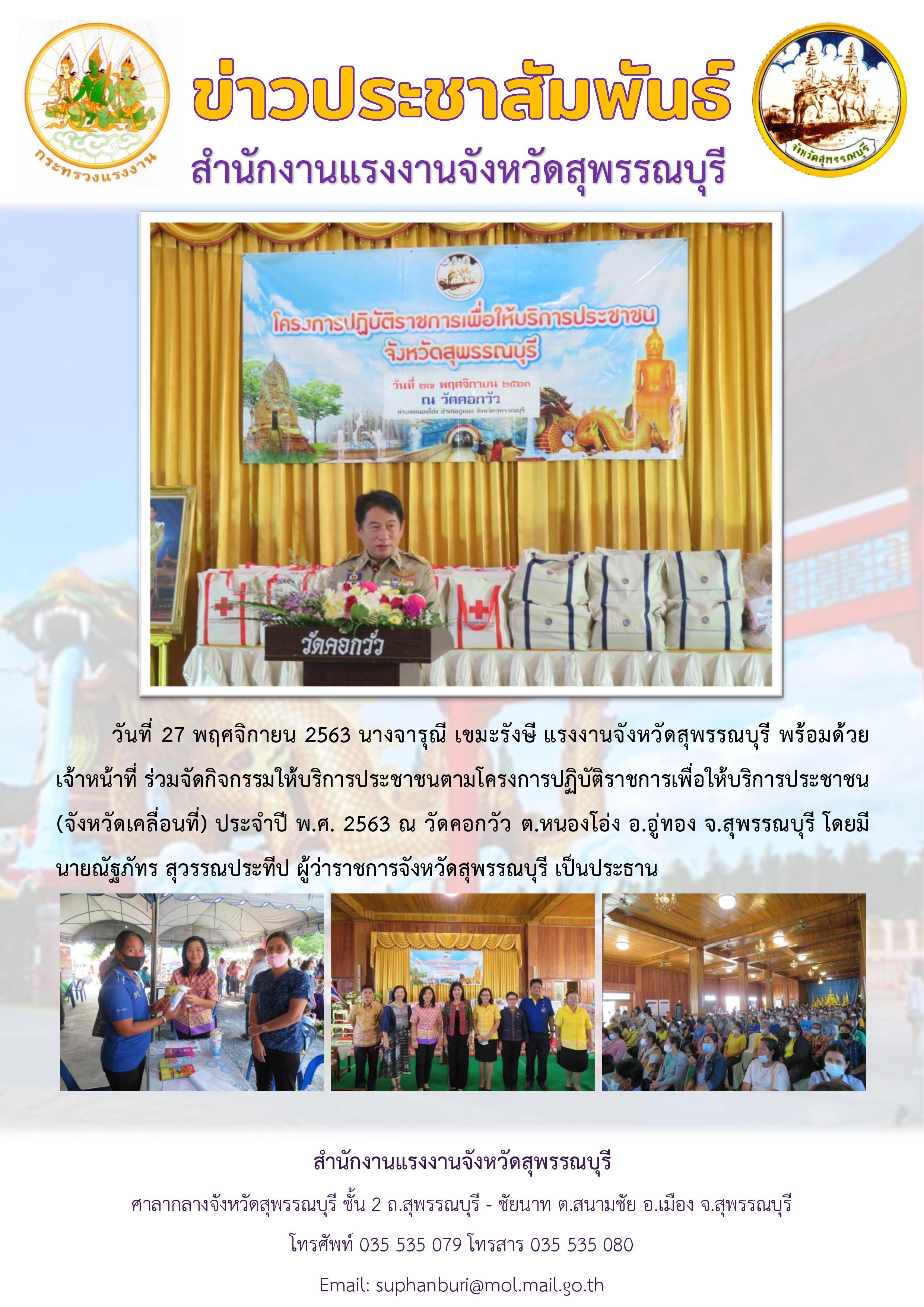 นางจารุณี เขมะรังษี แรงงานจังหวัดสุพรรณบุรี พร้อมด้วยเจ้าหน้าที่ร่วมจัดกิจกรรมให้บริการประชาชน (จังหวัดเคลื่อนที่)