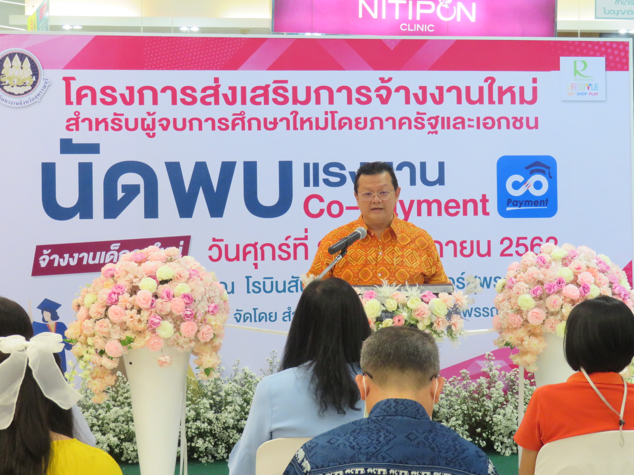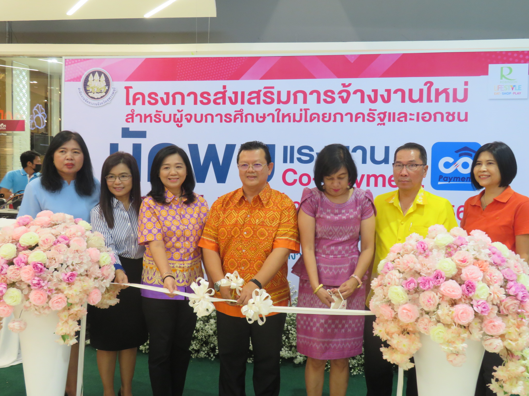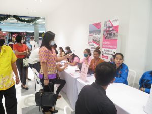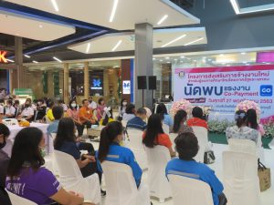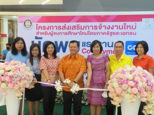 นางจารุณี เขมะรังษี แรงงานจังหวัดสุพรรณบุรี ร่วมพิธีเปิดกิจกรรมนัดพบ Co-Payment โครงการเสริมสร้างการจ้างงานใหม่สำหรับผู้จบการศึกษาใหม่