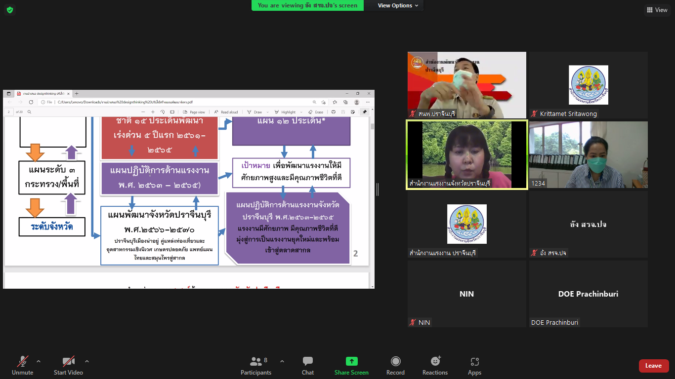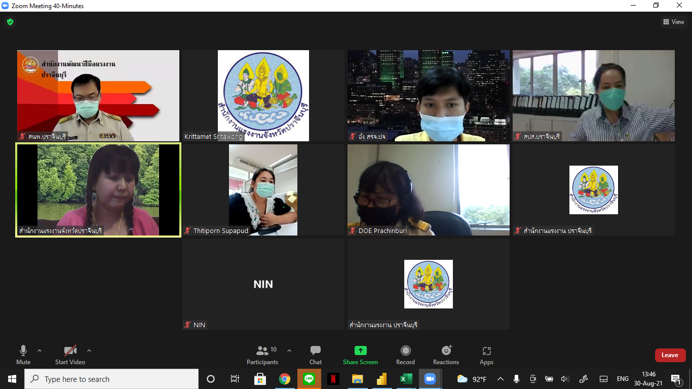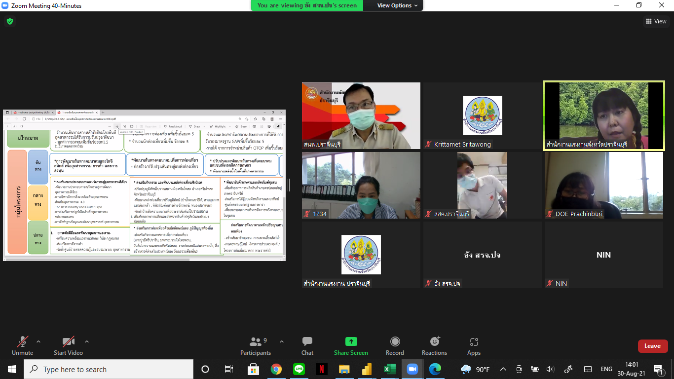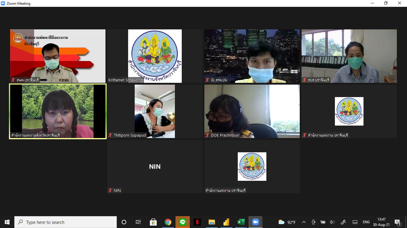 วันจันทร์ที่ 30 สิงหาคม 2564 เวลา 13.30 น. นางประไพพรรณ ลุ่มจันทร์ (แรงงานจังหวัดปราจีนบุรี) มอบหมาย นางสาวภัททิรา นวลปลอด นักวิชาการแรงงานชำนาญการ ประชุมจัดทำแผนพัฒนาจังหวัด 5 ปี(พ.ศ.2566-2570) และแผนปฏิบัติราชการประจำปีของจังหวัด ประจำปีงบประมาณ พ.ศ. 2566 – 2570 โดยให้จัดทำแผน/โครงการ ที่สามารถแก้ไขปัญหา และตอบสนองความต้องการของประชาชนในระดับพื้นที่ และสอดคล้องกับประเด็นยุทธศาสตร์การพัฒนาจังหวัด ณ ห้องประชุมสำนักงานแรงงานจังหวัดปราจีนบุรี ชั้น 2 ศูนย์ราชการจังหวัดปราจีนบุรี โดยมีเจ้าหน้าที่แผนฯ หน่วยในสังกัดกระทรวงแรงงานจังหวัดปราจีนบุรีเข้าร่วมประชุมฯ ผ่านระบบ Online Zoom meetings