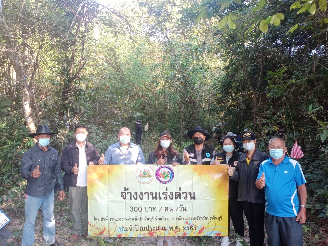 วันจันทร์ที่ 17 เดือนมกราคม พ.ศ. 2565 นางประไพพรรณ ลุ่มจันทร์ แรงงานจังหวัดปราจีนบุรี มอบหมายเจ้าหน้าที่ ลงพื้นที่เปิดโครงการแก้ไขปัญหาความเดือดร้อนด้านอาชีพ จังหวัดปราจีนบุรี ปี 2565 (งวดที่ 2) กิจกรรมจ้างงานเร่งด่วน สร้างแนวกันไฟ/พัฒนาป่าชุมชนสาธารณประโยชน์ สถานที่ : บ้านคลองยาง ม.4 ต.นนทรี อ.กบินทร์บุรี จ.ปราจีนบุรี มีผู้เข้าร่วมโครงการฯ จำนวน 22 คน ทำงาน 3 วัน ได้รับค่าตอบแทนการทำงานวันละ 300 บาทต่อคนต่อวัน ประสานงานพื้นที่โดย อาสาสมัครแรงงานตำบลนนทรี นายทองพูล อุ่นมี