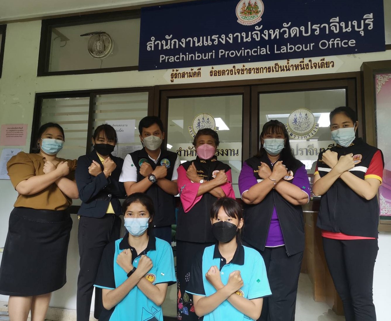 นางประไพพรรณ ลุ่มจันทร์ แรงงานจังหวัดปราจีนบุรี และเจ้าหน้าที่สำนักงานแรงงานจังหวัดปราจีนบุรีประกาศเจตนารมณ์ต่อต้านการทุจริต และร่วมถ่ายภาพหมู่แสดงสัญลักษณ์การต่อต้านการทุจริต ณ สำนักงานแรงงาน ภายใต้วิสัยทัศน์ “ประเทศไทยใสสะอาด ไทยทั้งชาติต้านทุจริต (Zero Tolerance & Clean Thailand)” โดยมีวัตถุประสงค์เพื่อแสดงเจตนารมณ์ร่วมกันในการต่อต้านทุจริต ปลุกจิตสำนึกและปลูกฝังค่านิยมความซื่อสัตย์สุจริต มีคุณธรรมและจริยธรรม และร่วมกันสร้างสังคมที่ไม่ยอม ไม่ทน และไม่เฉยต่อการทุจริตคอรัปชันทุกรูปแบบ เกิดเป็นภาพลักษณ์ที่ดีต่อองค์กรและชุมนในทุกพื้นที่ ทั้งนี้ ได้มอบหมายอาสาสมัครแรงงานระดับตำบลทุกแห่ง เป็นแกนนำถ่ายทอดเจตนารมย์เชิญชวนเครือข่ายทุกระดับประกาศเจตนารมย์ โดยร่วมกันถ่ายภาพแสดงสัญลักษณ์ต่อต้านทุจริตร่วมกัน