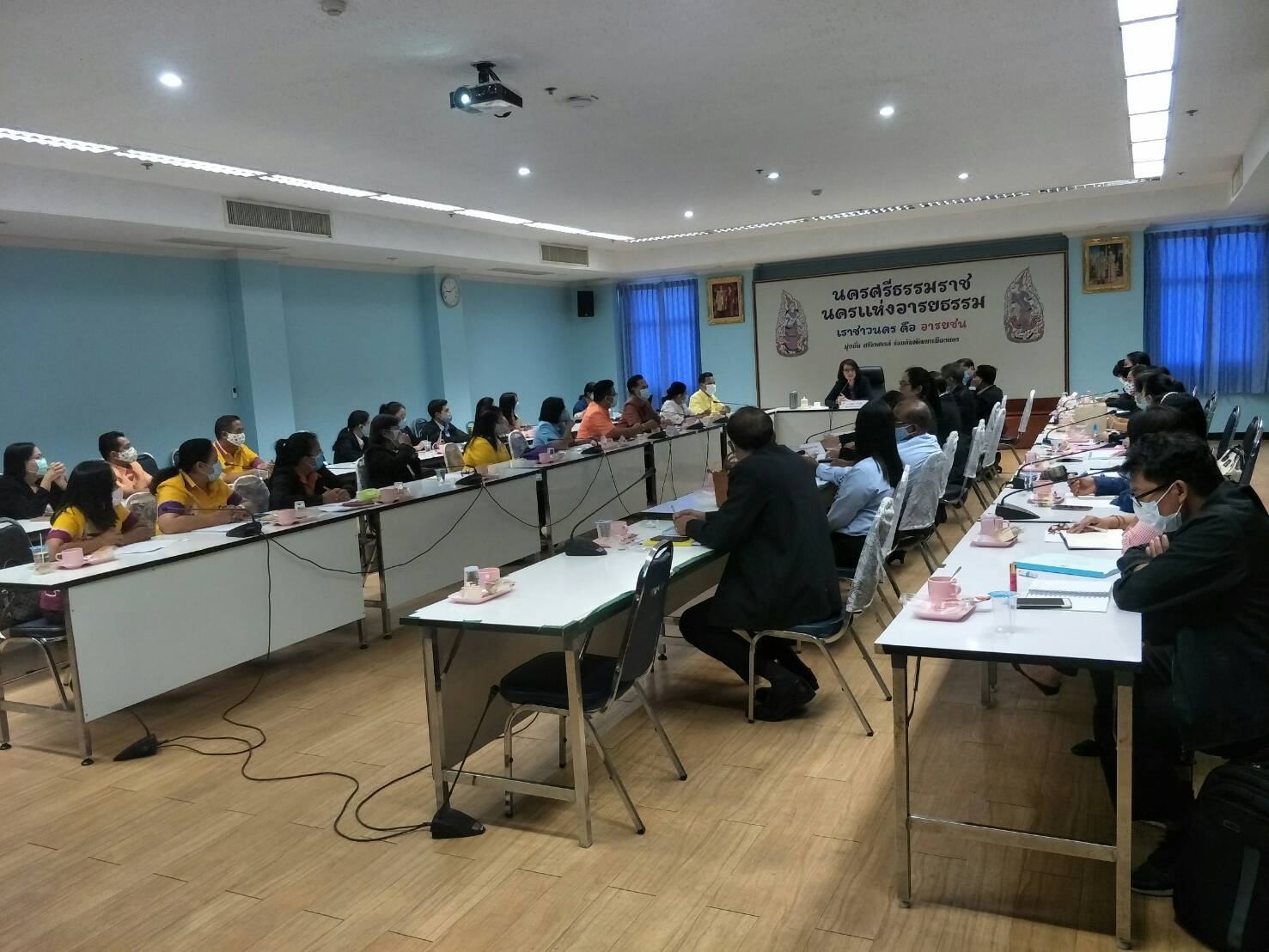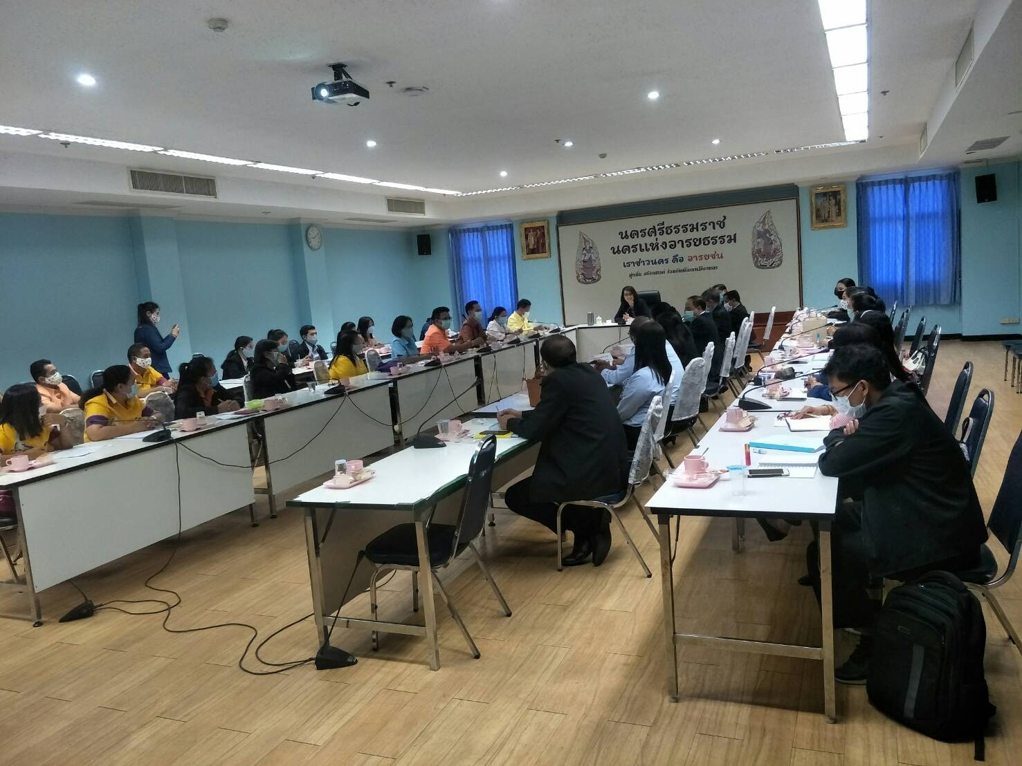จากนั้นผู้ตรวจราชการกระทรวงแรงงาน ได้ประชุมหัวหน้าส่วนราชการสังกัดกระทรวงแรงงานจังหวัดพัทลุง จังหวัดนครศรีธรรมราช เพื่อตรวจติดตามความก้าวหน้าของผลการปฏิบัติราชการตามประเด็นแผนการตรวจราชการของผู้ตรวจกระทรวงแรงงาน ประจำปีงบประมาณ พ.ศ. 2563 รอบที่ 2 ณ ห้องประชุมศรีปราชญ์ ศาลากลางจังหวัดนครศรีธรรมราช