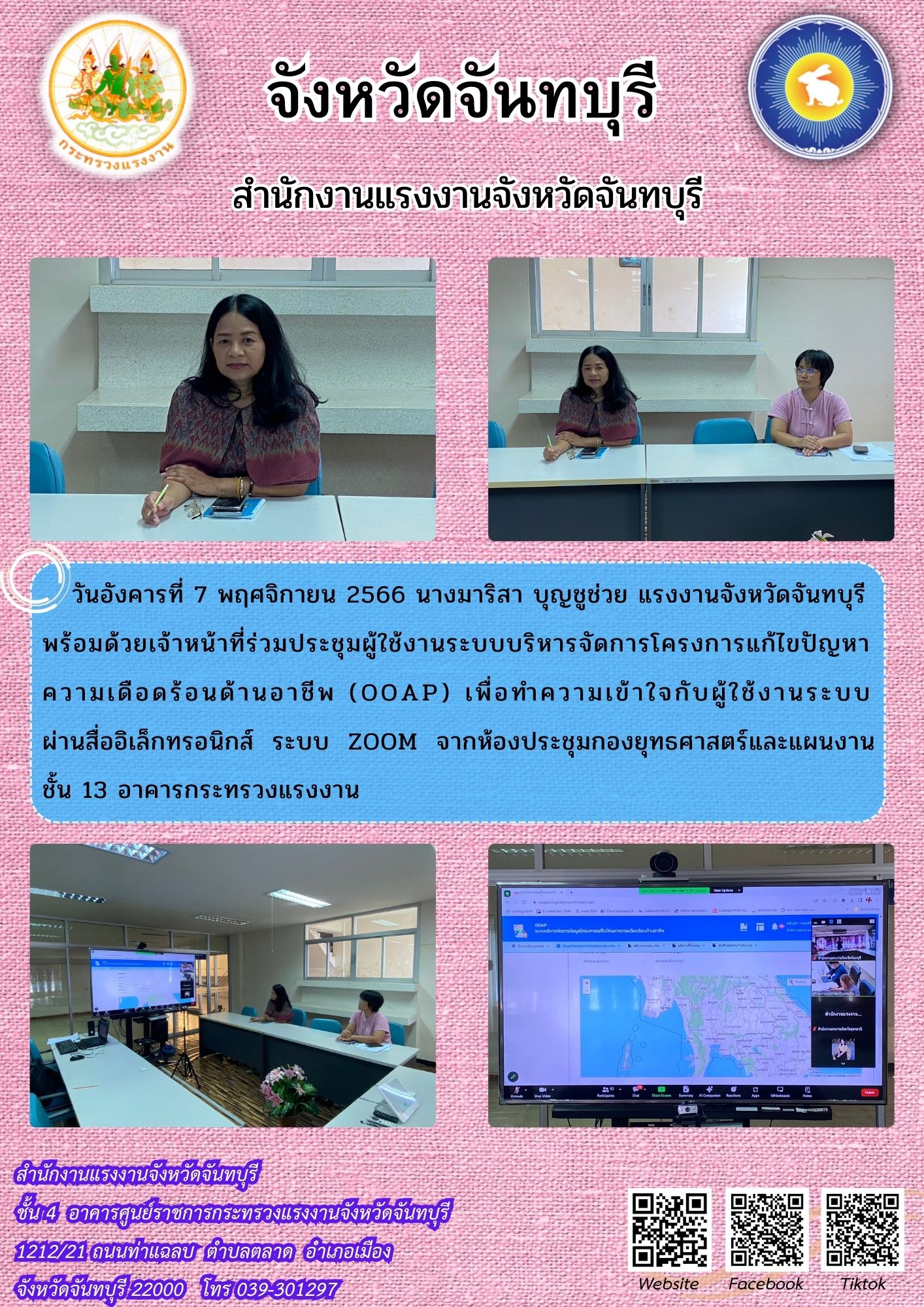 สรจ.จันทบุรี ร่วมประชุมผู้ใช้งานระบบบริหารจัดการโครงการแก้ไขปัญหา ความเดือดร้อนด้านอาชีพ (OOAP)