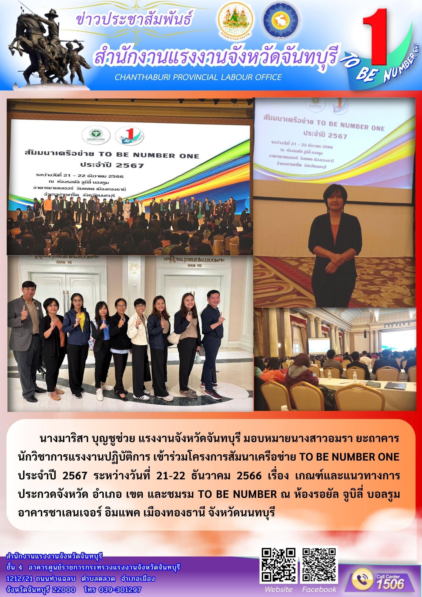 สรจ.จันทบุรี เข้าร่วมโครงการสัมนาเครือข่าย TO BE NUMBER ONE ประจำปี 2567