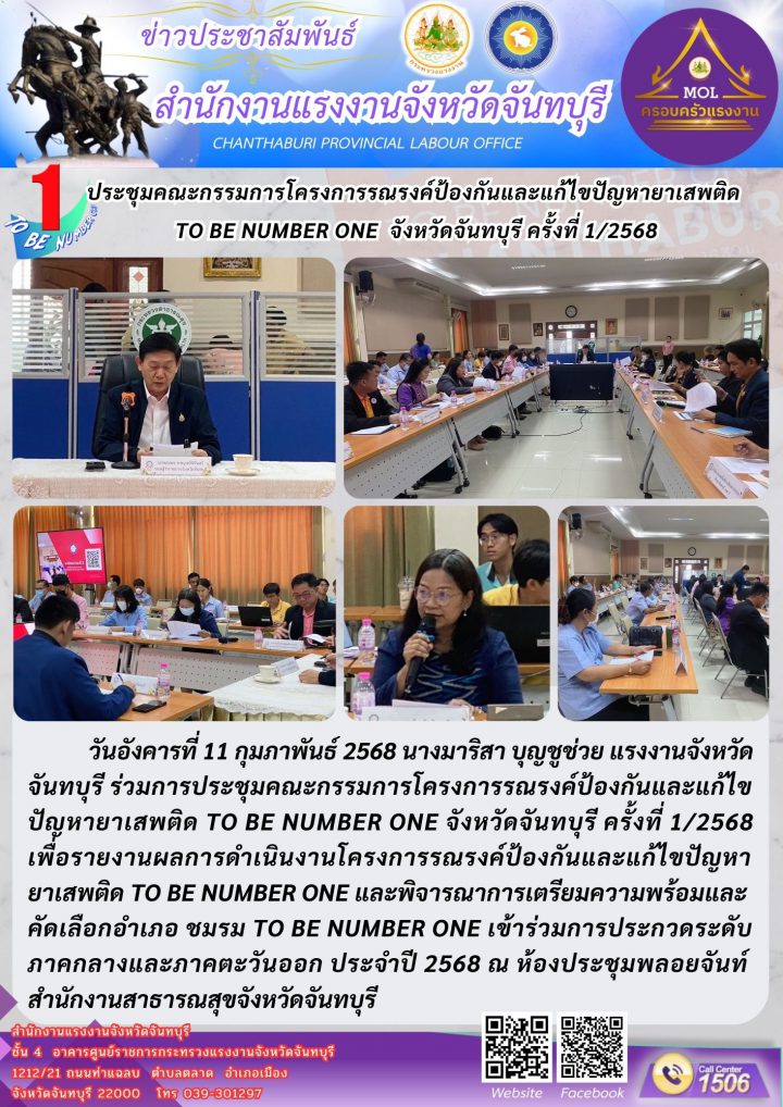 นางมาริสา บุญชูช่วย แรงงานจังหวัดจันทบุรี ร่วมการประชุมคณะกรรมการโครงการรณรงค์ป้องกันและแก้ไขปัญหายาเสพติด TO BE NUMBER ONE จังหวัดจันทบุรี