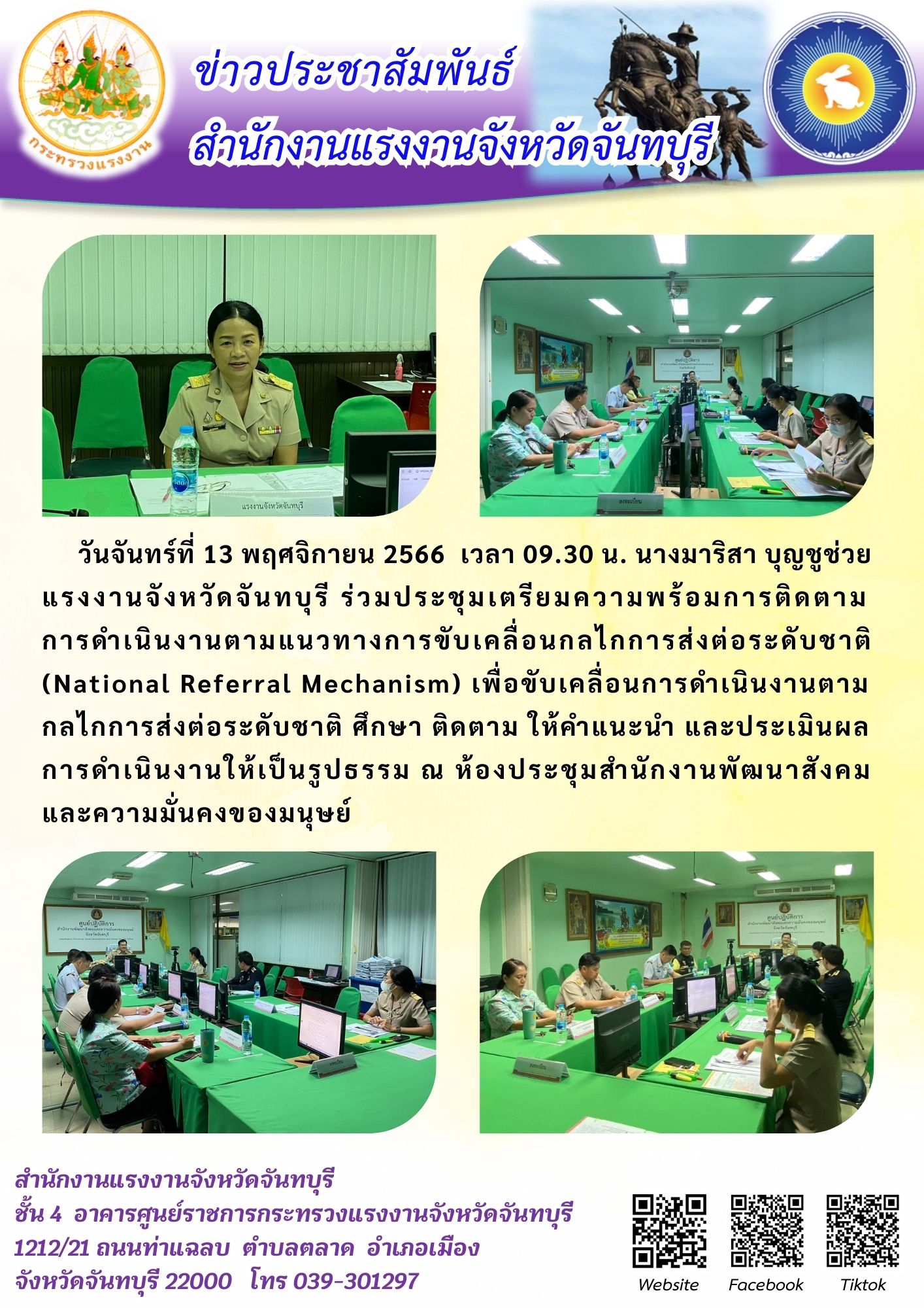 สรจ.จันทบุรี ร่วมประชุมเตรียมความพร้อมการติดตามการดำเนินงานตามแนวทางการขับเคลื่อนกลไกการส่งต่อระดับชาติ