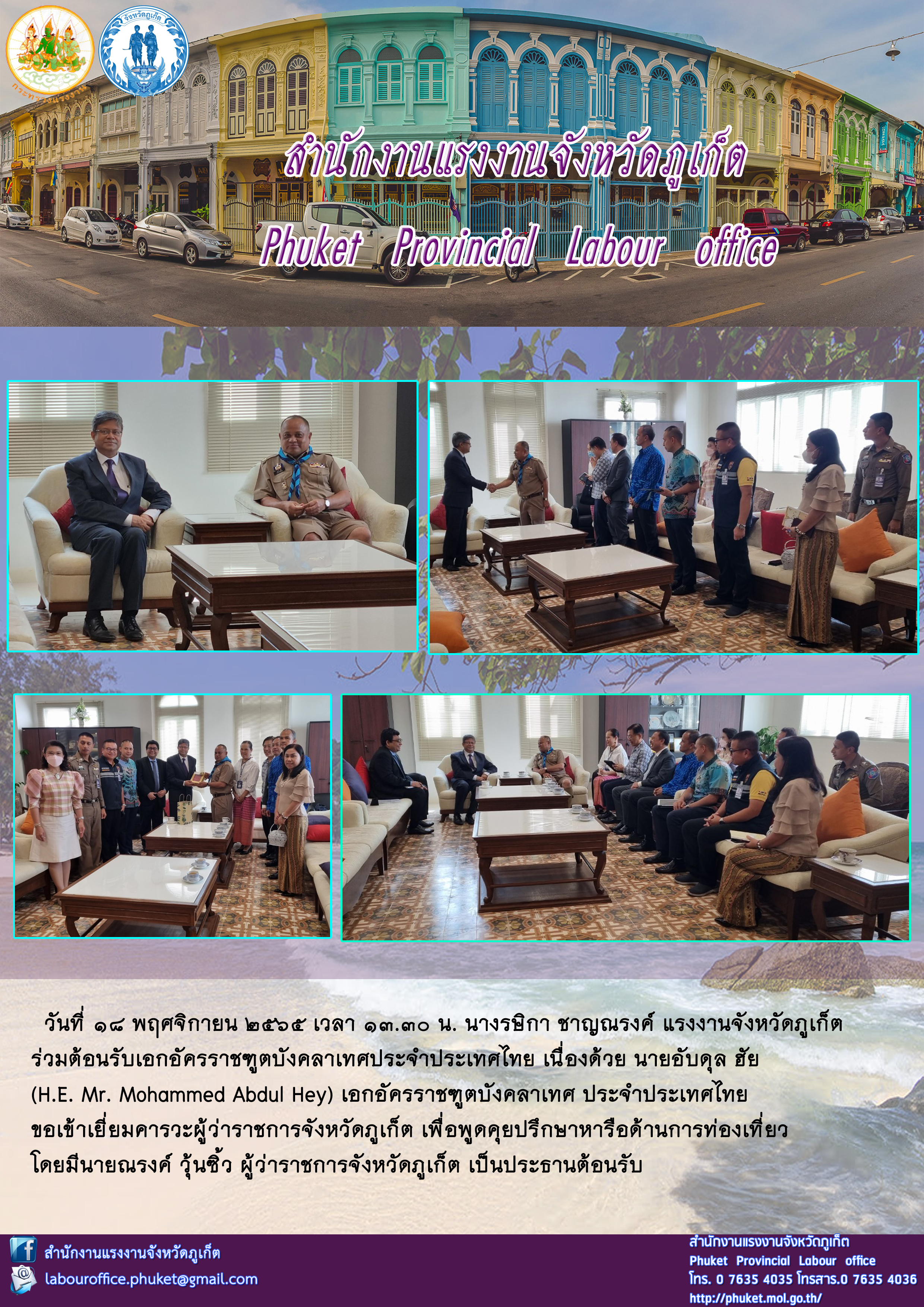 นางรษิกา ชาญณรงค์ แรงงานจังหวัดภูเก็ต ร่วมต้อนรับเอกอัครราชฑูตบังคลาเทศประจำประเทศไทย