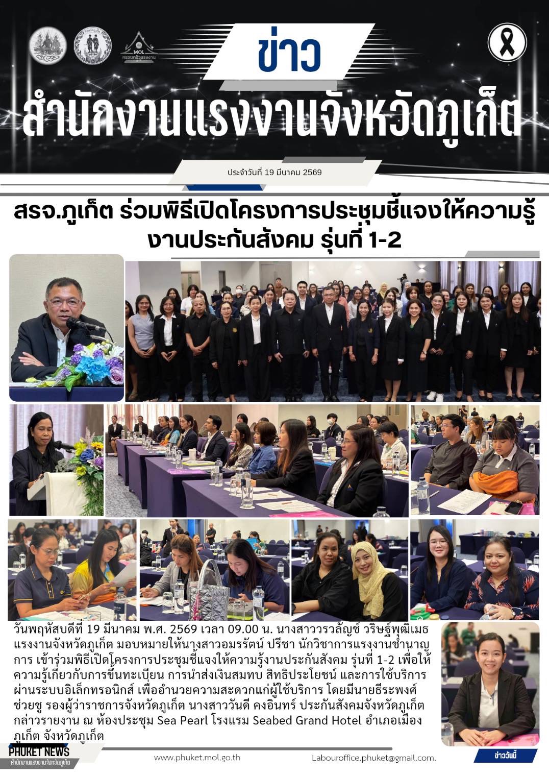 สรจ.ภูเก็ต ร่วมพิธีเปิดโครงการประชุมชี้แจงให้ความรู้ งานประกันสังคม รุ่นที่ 1-2