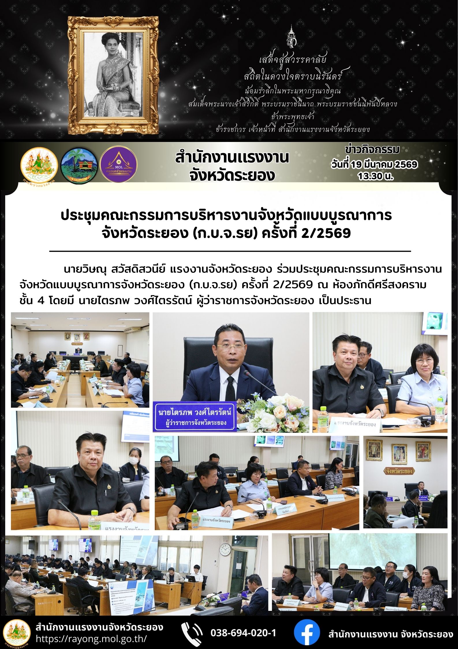 แรงงานจังหวัดระยอง ร่วมประชุมคณะกรรมการบริหารงานจังหวัดแบบบูรณาการจังหวัดระยอง (ก.บ.จ.รย) ครั้งที่ 2/2569