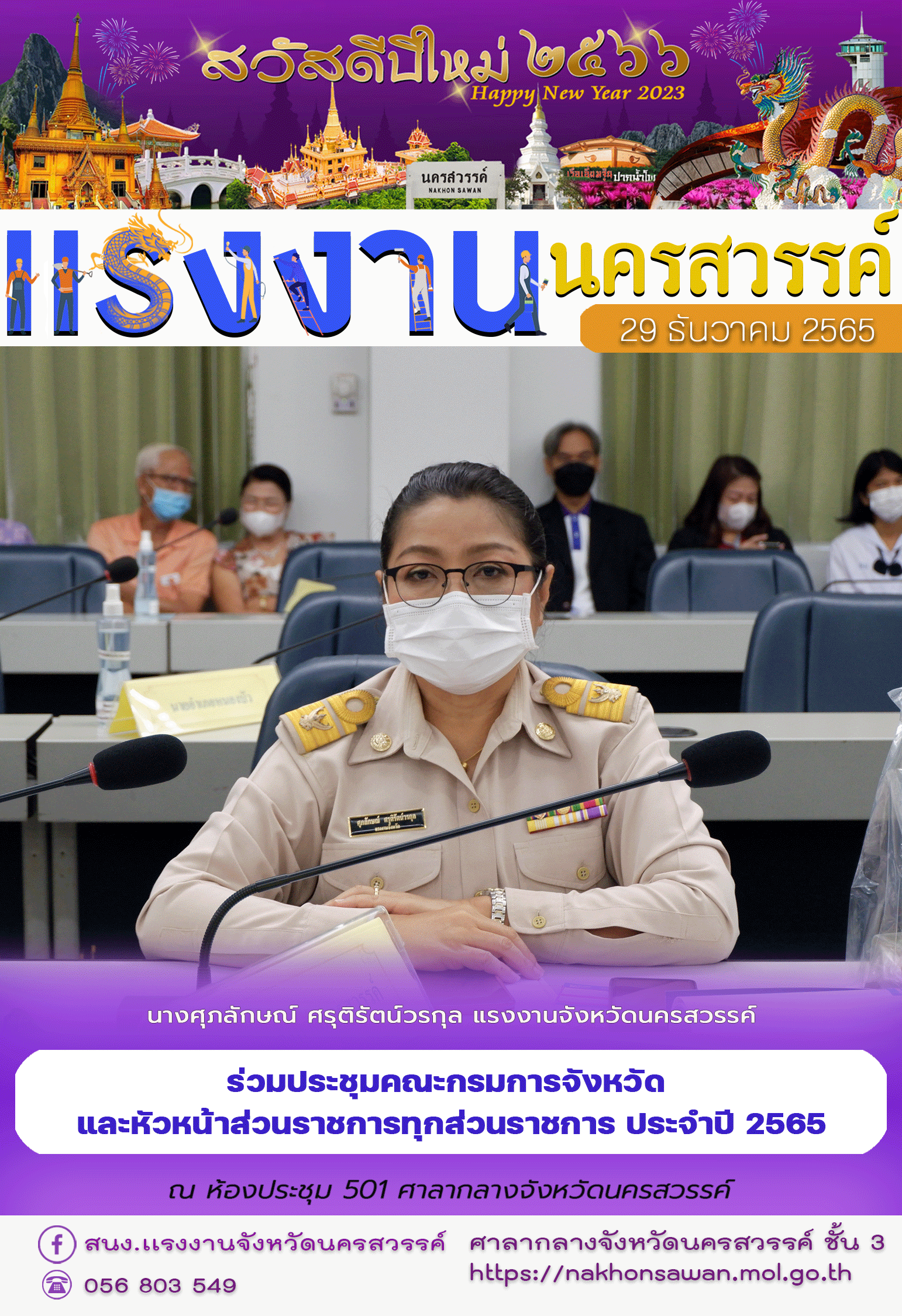 นางศุภลักษณ์ ศรุติรัตน์วรกุล แรงงานจังหวัดนครสวรรค์ ร่วมประชุมคณะกรมการจังหวัด และหัวหน้าส่วนราชการทุกส่วนราชการ ประจำปี 2565