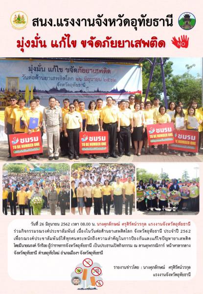 นางศุภลักษณ์ ศรุติรัตน์วรกุล แรงงานจังหวัดอุทัยธานี ร่วมกิจกรรมวันต่อต้านยาเสพติด