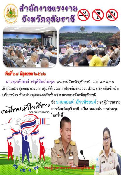 นางศุภลักษณ์ ศรุติรัตน์วรกุล แรงงานจังหวัดอุทัยธานี ร่วมประชุมคณะกรรมการศูนย์อำนวยการป้องกันและปราบปรามยาเสพติดจังหวัดอุทัยธานี