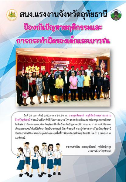 นางศุภลักษณ์ ศรุติรัตน์วรกุล แรงงานจังหวัดอุทัยธานี ร่วมพิธีเปิดโครงการส่งเสริมและสนับสนุนสถานศึกษา