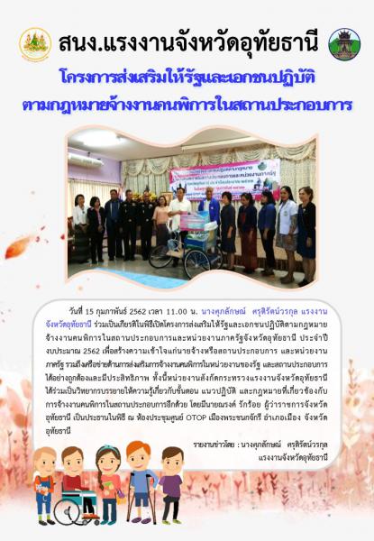 นางศุภลักษณ์ ศรุติรัตน์วรกุล แรงงานจังหวัดอุทัยธานี ร่วมโครงการส่งเสริมรัฐและเอกชนปฏิบัติตามกฎหมายจ้างงานคนพิการ