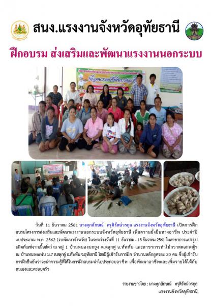 นางศุภลักษณ์ ศรุติรัตน์วรกุล แรงงานจังหวัดอุทัยธานี เปิดฝึกอบรมส่งเสริมและพัฒนาแรงงานนอกระบบ
