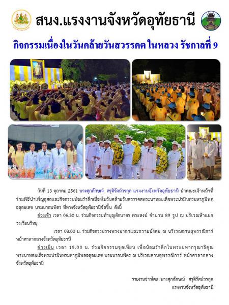 นางศุภลักษณ์ ศรุติรัตน์วรกุล แรงงานจังหวัดอุทัยธานี และเจ้าหน้าที่ ร่วมกิจกรรมเนื่องในวันคล้ายวันสวรรคตในหลวง รัชการที่ 9