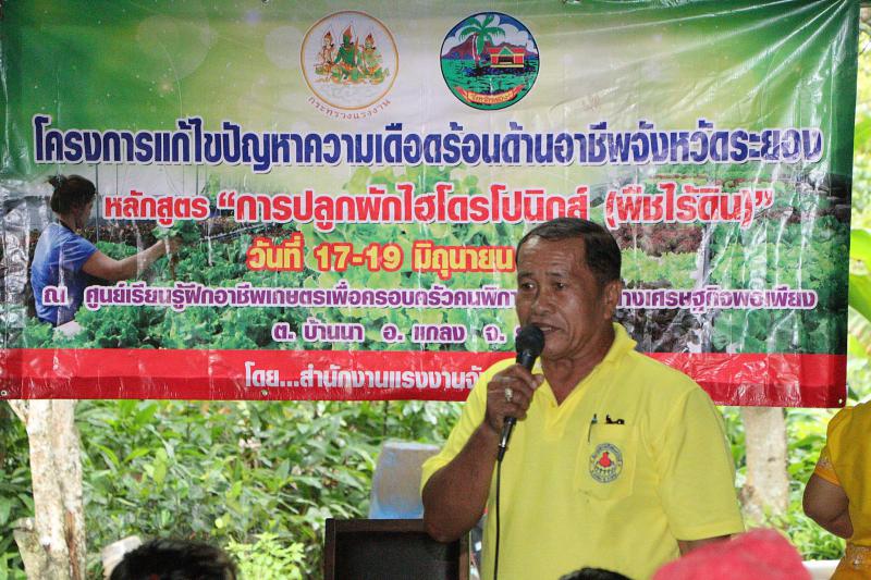 เมื่อวันอังคารที่ 18 มิถุนายน 2562 นางสาวกรจิรัฎฐ์ พงจันทร์ศธร แรงงานจังหวัดระยอง พร้อมหัวหน้าส่วนราชการสังกัดกระทรวงแรงงานจังหวัดระยองนำคณะกรรมการตรวจสอบและประเมินผลประจำกระทรวงแรงงาน ลงพื้นที่ตรวจเยี่ยมการฝึกอาชีพของแรงงานนอกระบบตามโครงการแก้ไขปัญหาความเดือดร้อนด้านอาชีพ พ.ศ. 2562 หลักสูตรการปลูกผักไฮโดรโปนิกส์ (พืชไร้ดิน) ณ ศูนย์เรียนรู้ฝึกอาชีพเกษตรเพื่อครอบครัวคนพิการตามแนวทางเศรษฐกิจพอเพียง ตำบลบ้านนา อำเภอแกลง จังหวัดระยอง