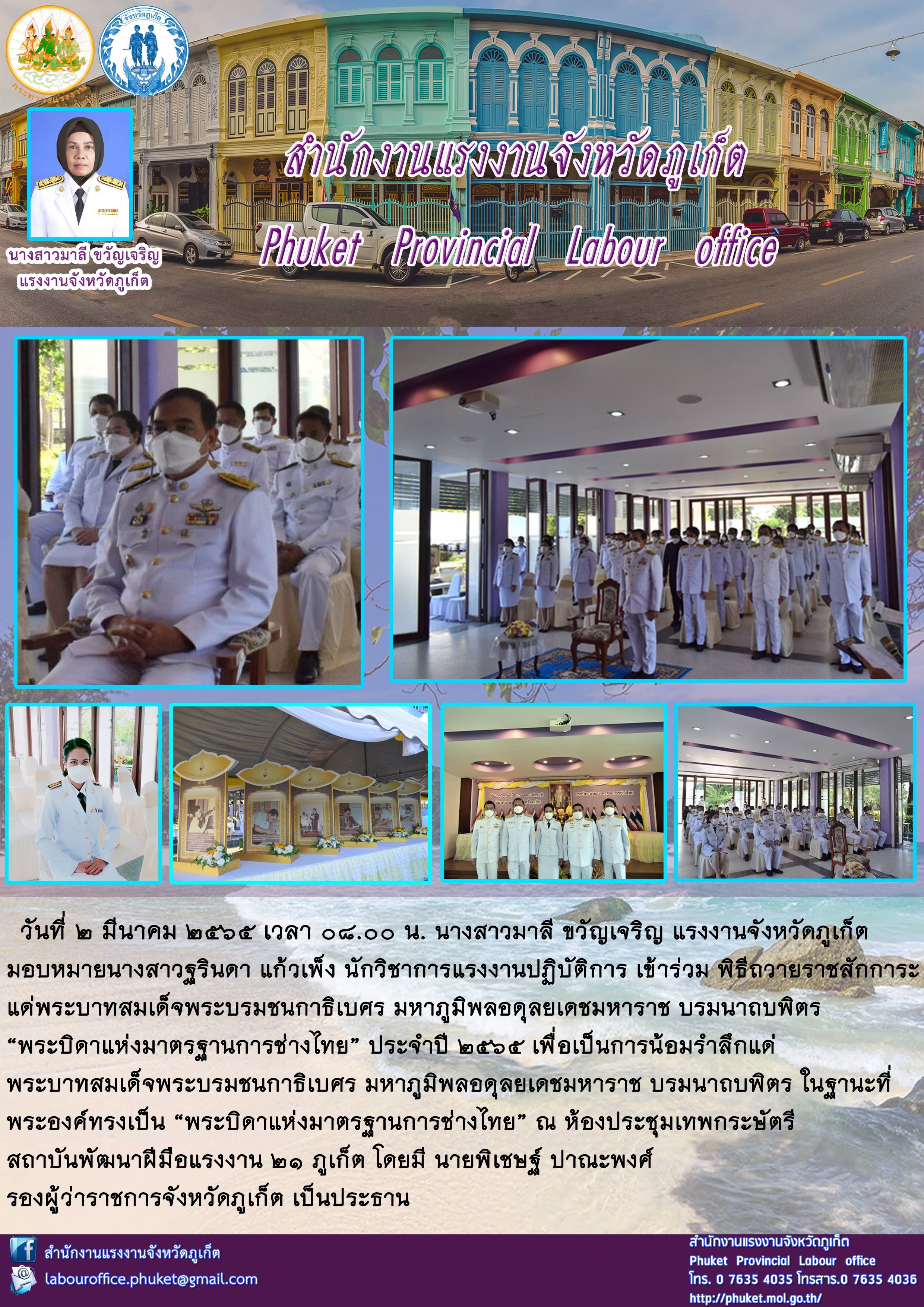 สรจ.ภูเก็ต เข้าร่วมพิธีถวายราชสักการะ แด่พระบาทสมเด็จพระบรมชนกาธิเบศร มหาภูมิพลอดุลยเดชมหาราช บรมนาถบพิตร “พระบิดาแห่งมาตรฐานการช่างไทย” ประจำปี 2565